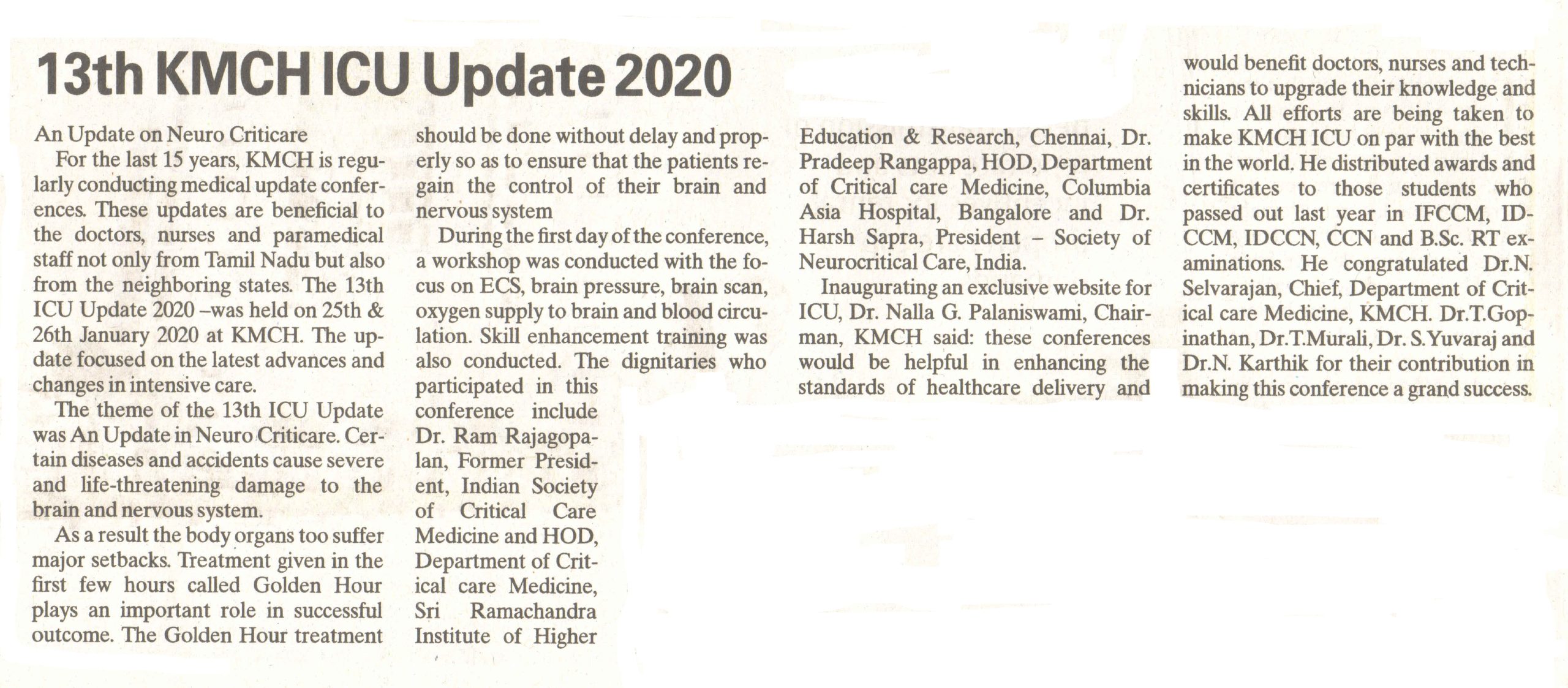 13th KMCH ICU Update 2020 on Neuro Criticare