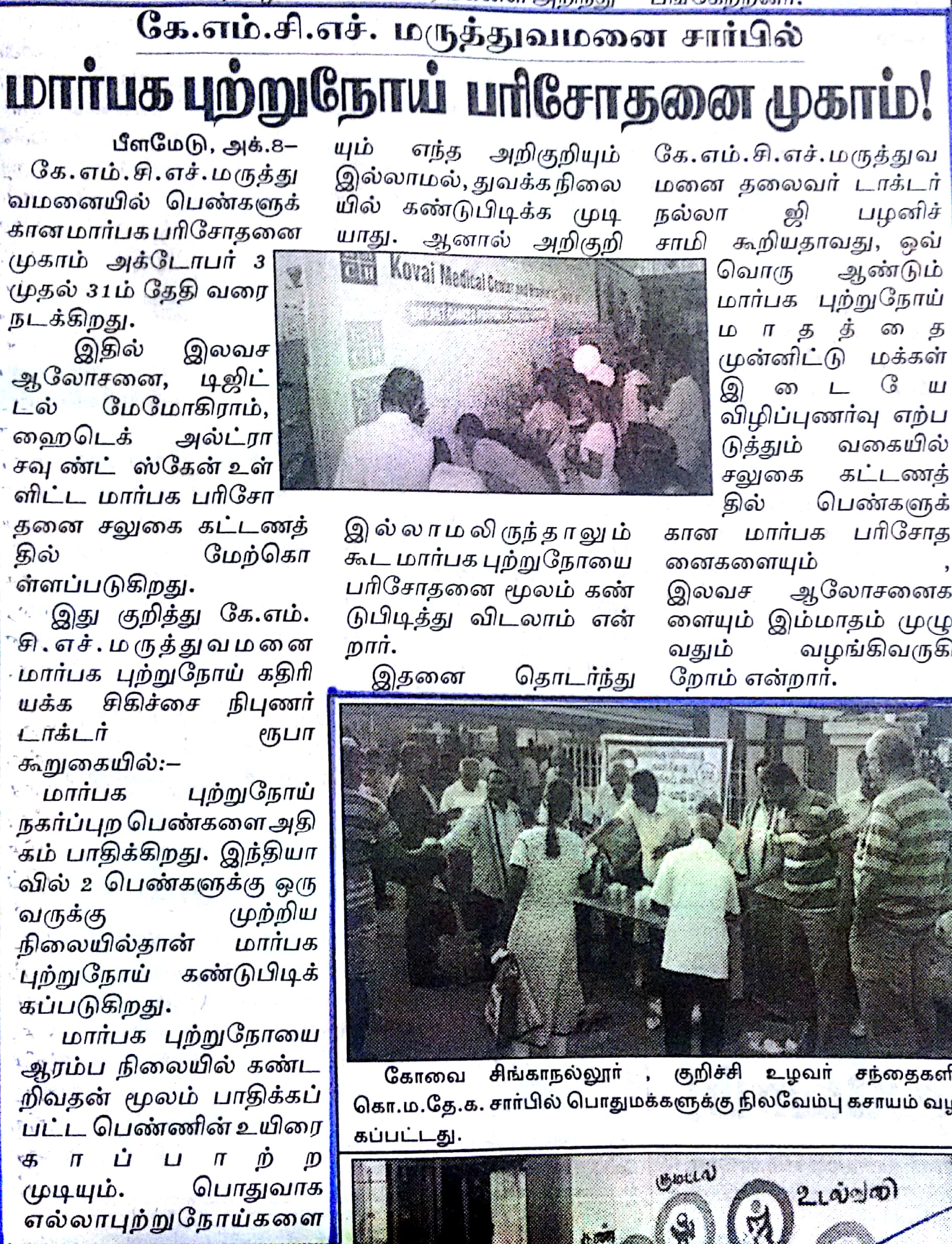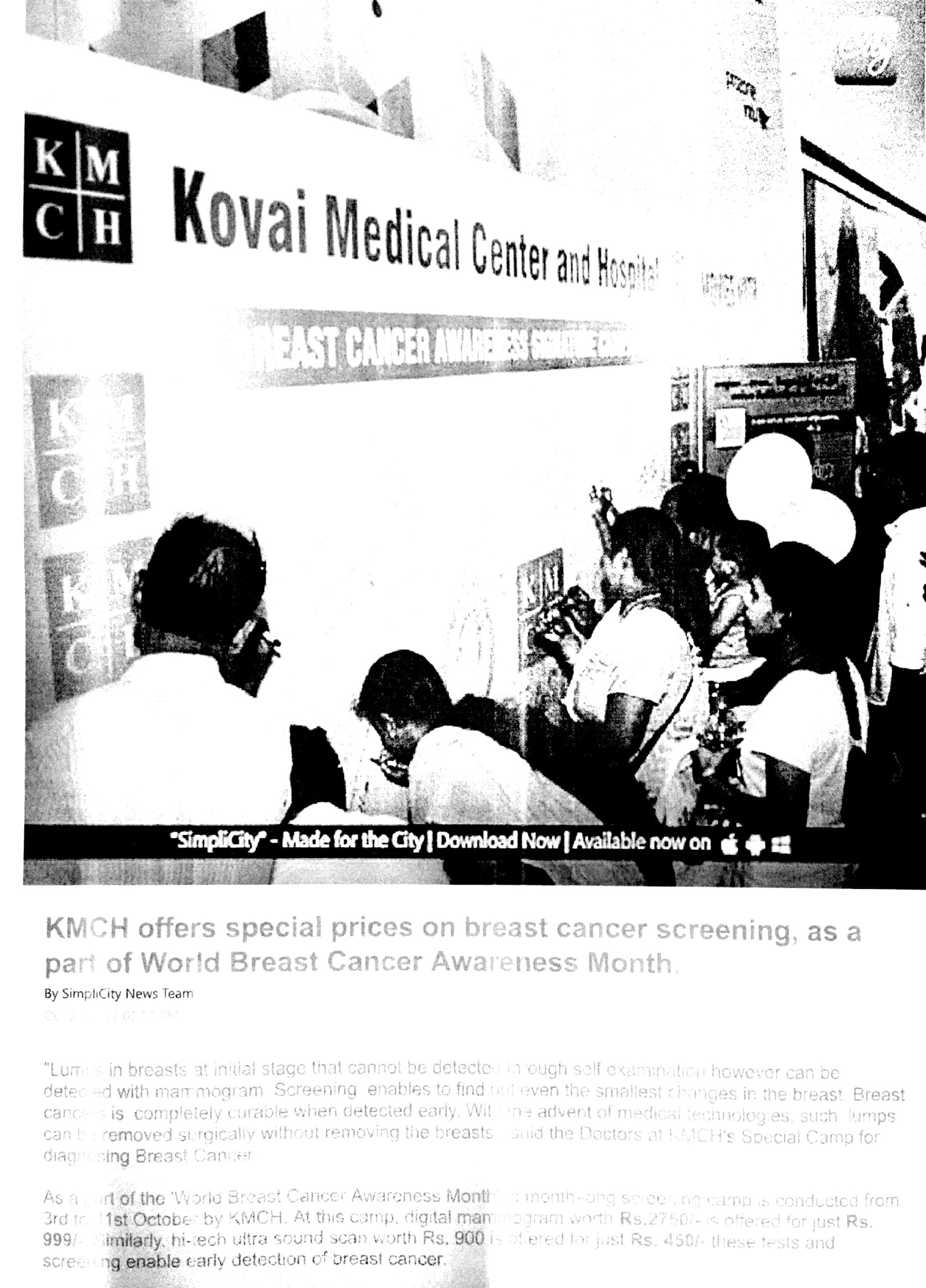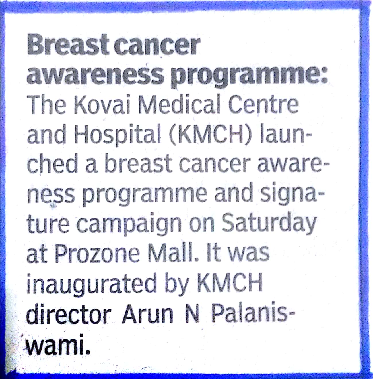 Press Clippings of “Breast Cancer Camp By KMCH” appeared in the following news journals.