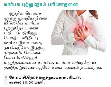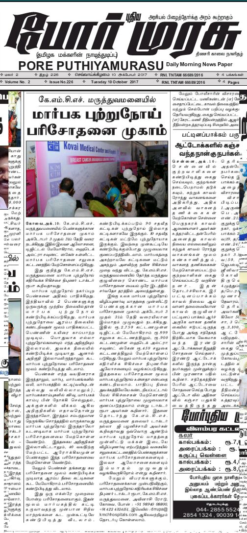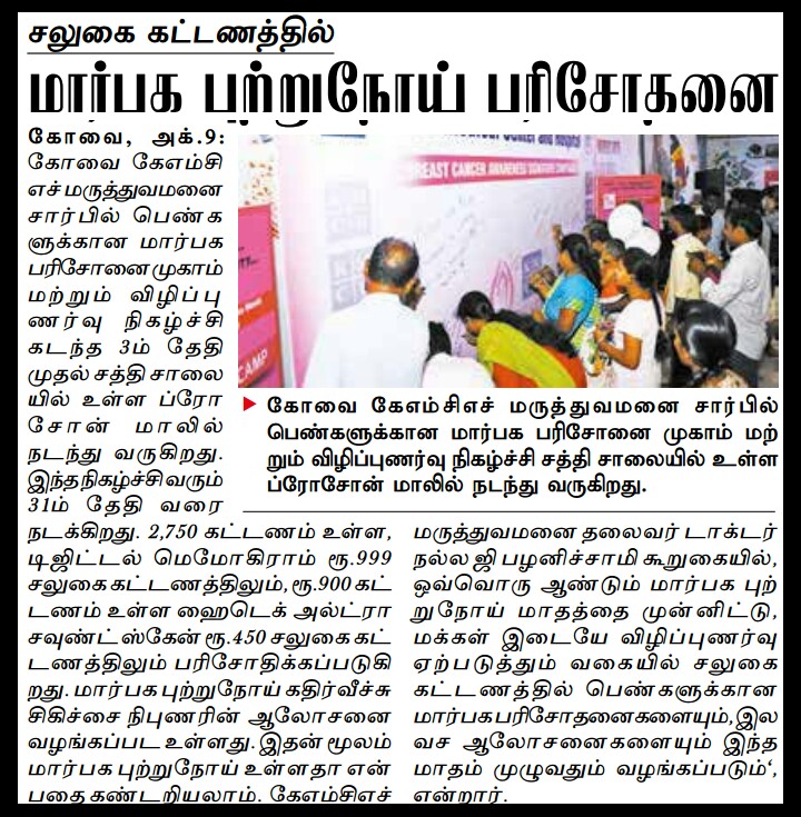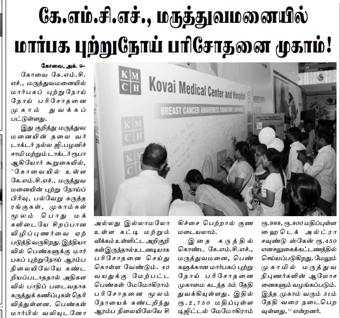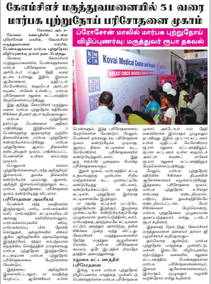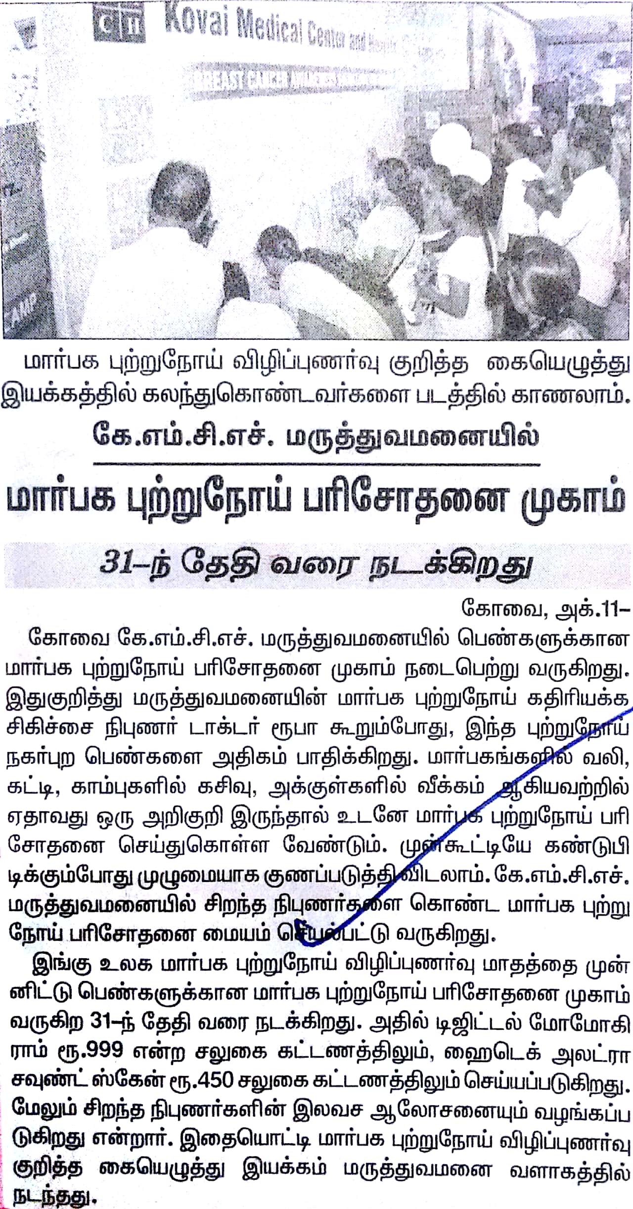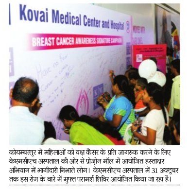 Press Clippings of “Breast Cancer Camp By KMCH” appeared in the following news journals.