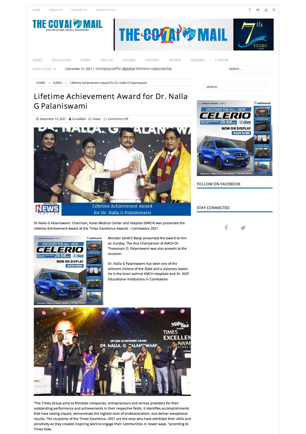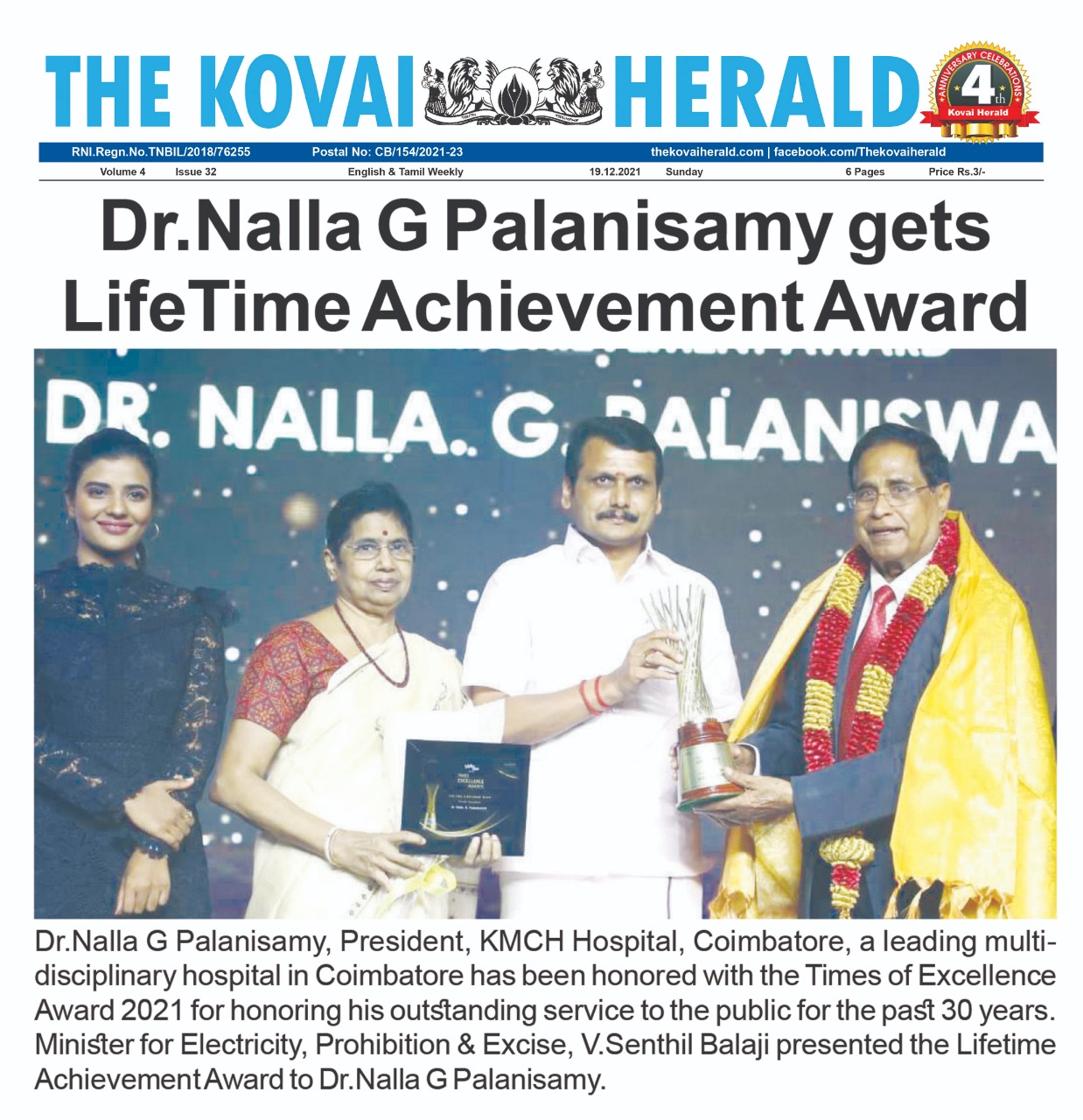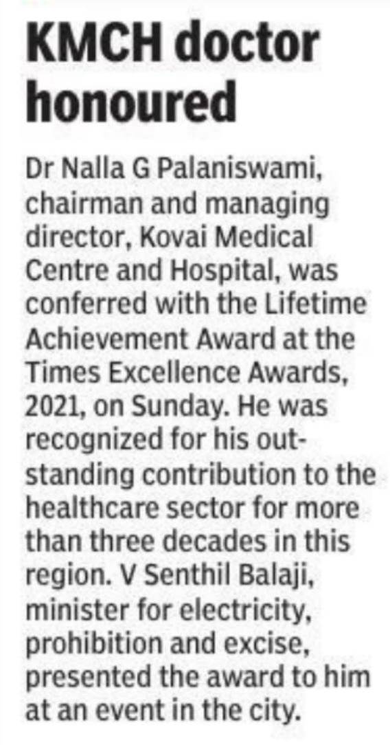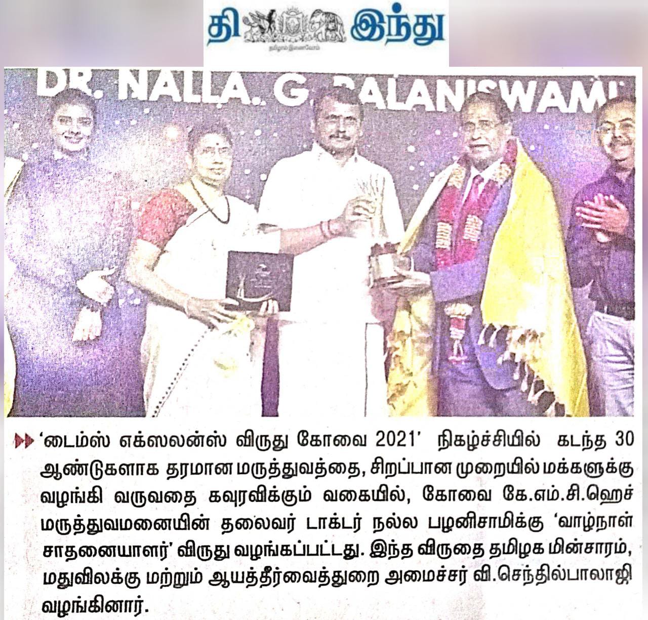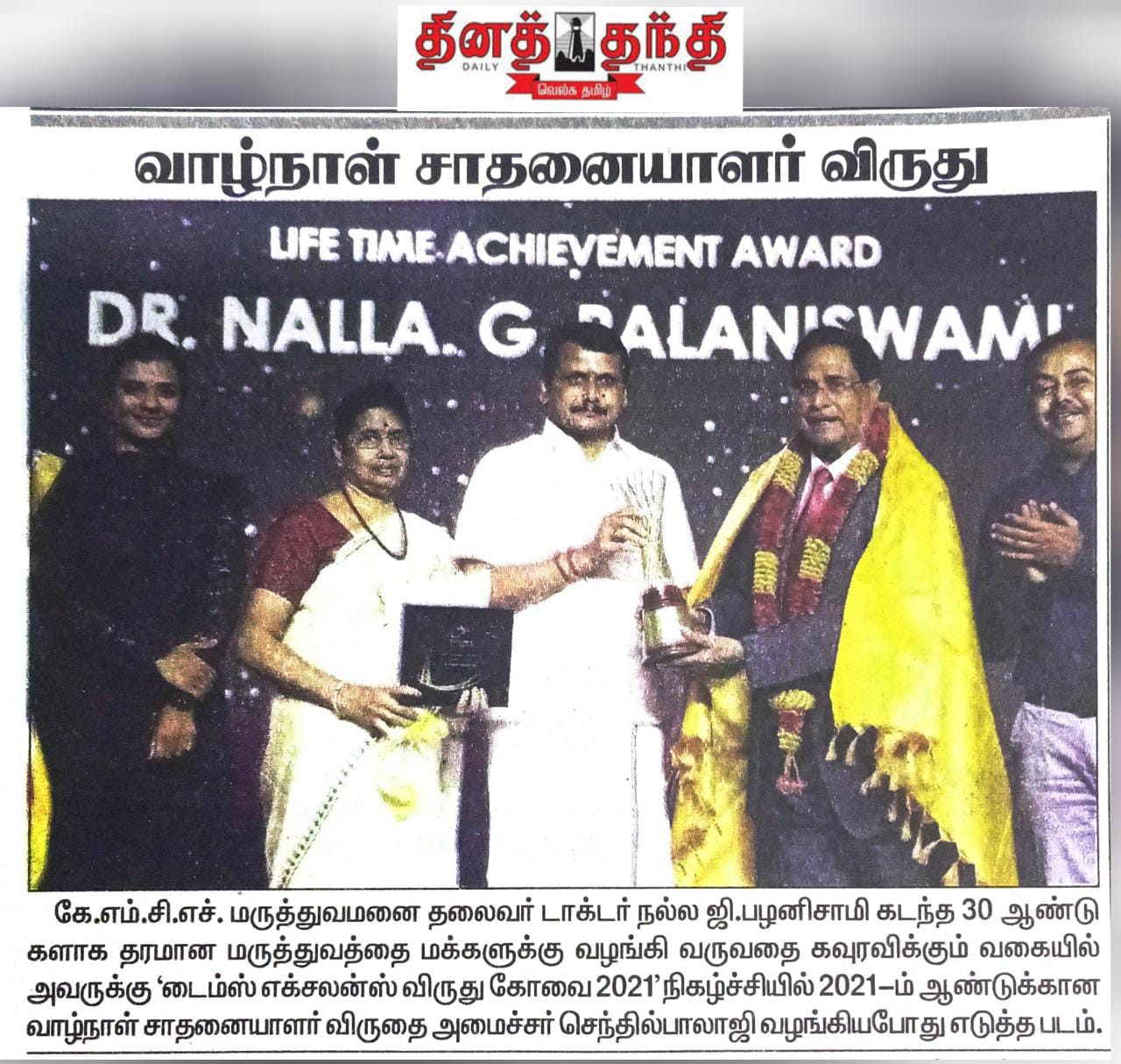 • Dr. Nalla G Palanisamy Gets Life Time Achievement Award