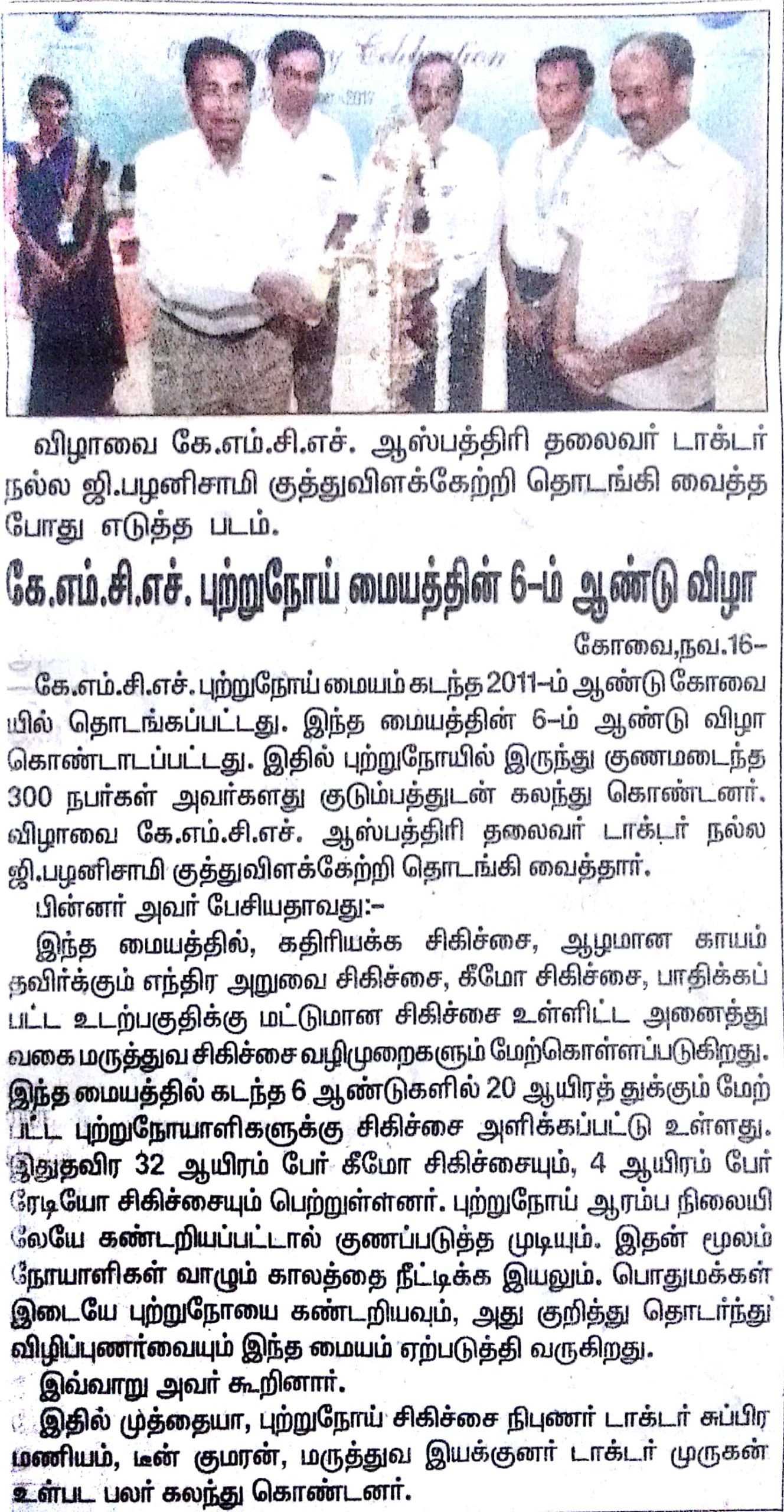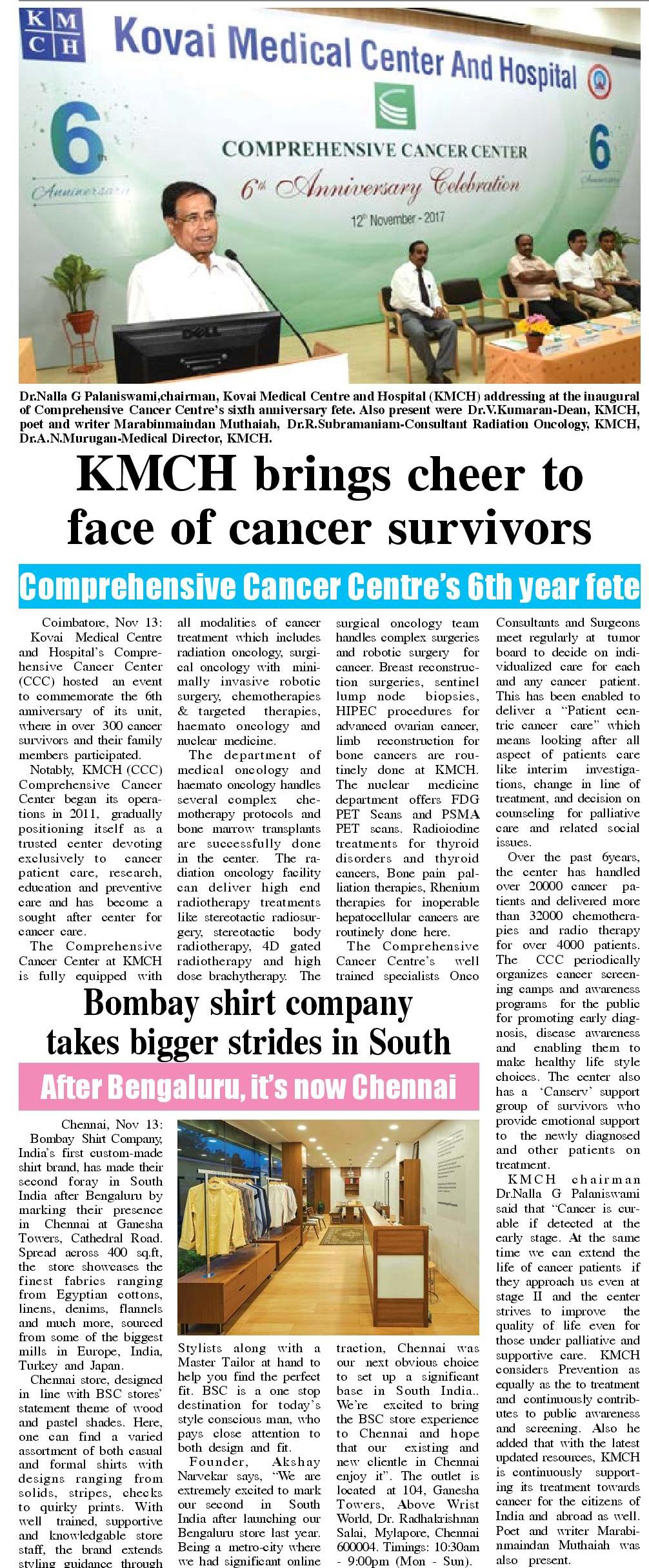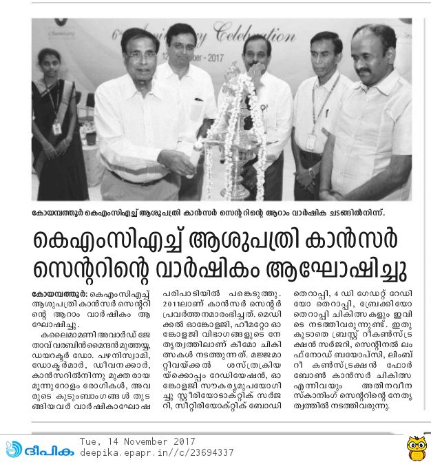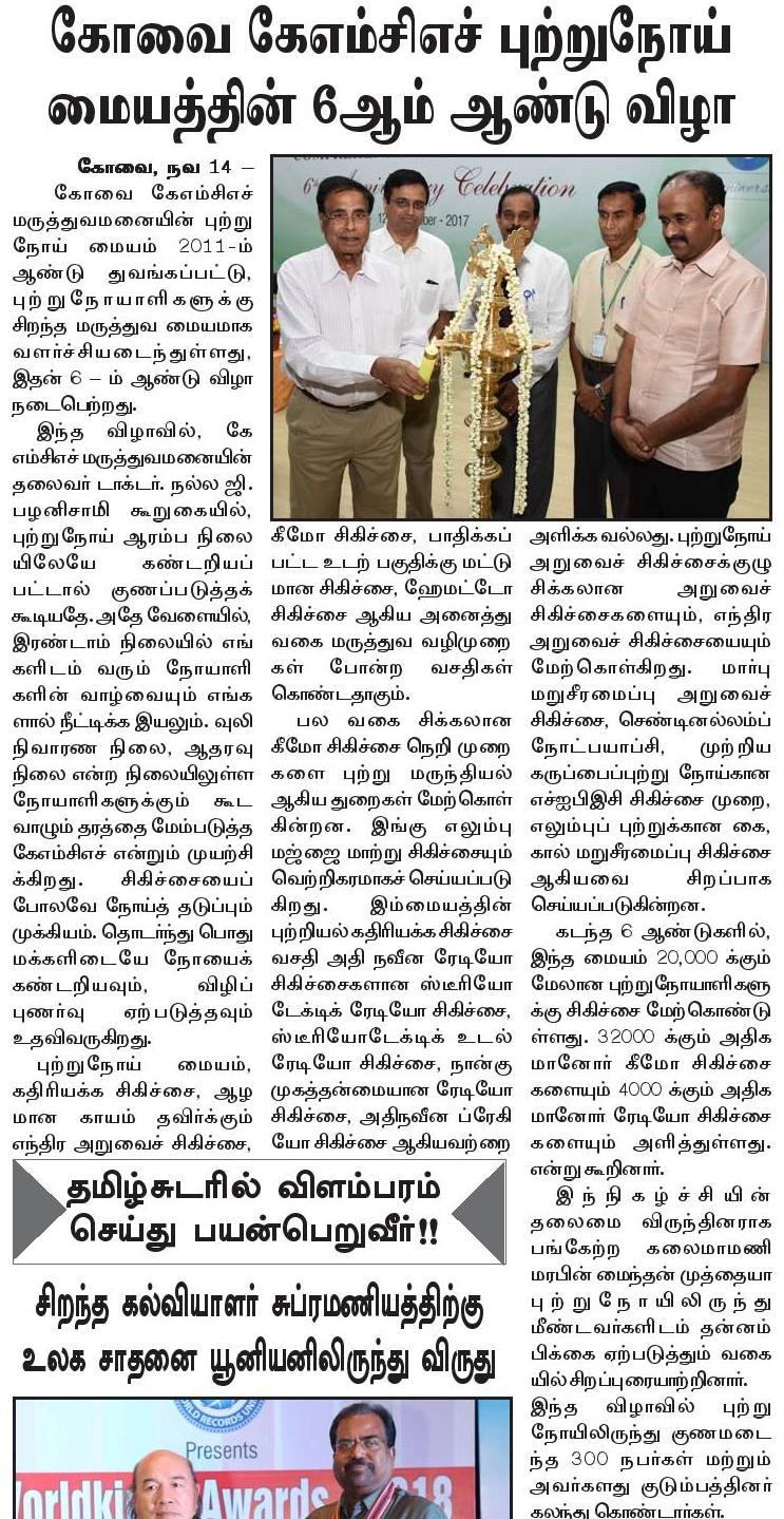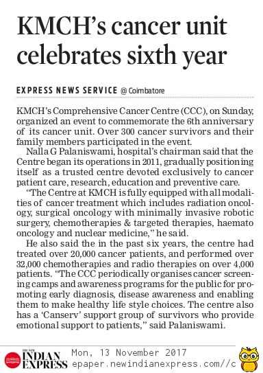 Press Clippings of “KMCH Celebrates Cancer Centre Anniversary” appeared in the following news journals.