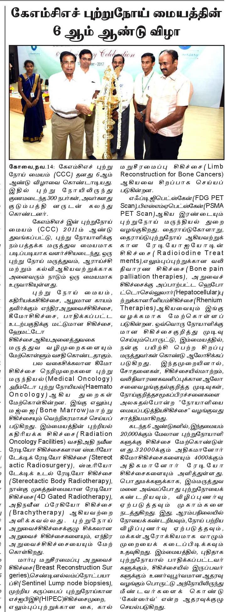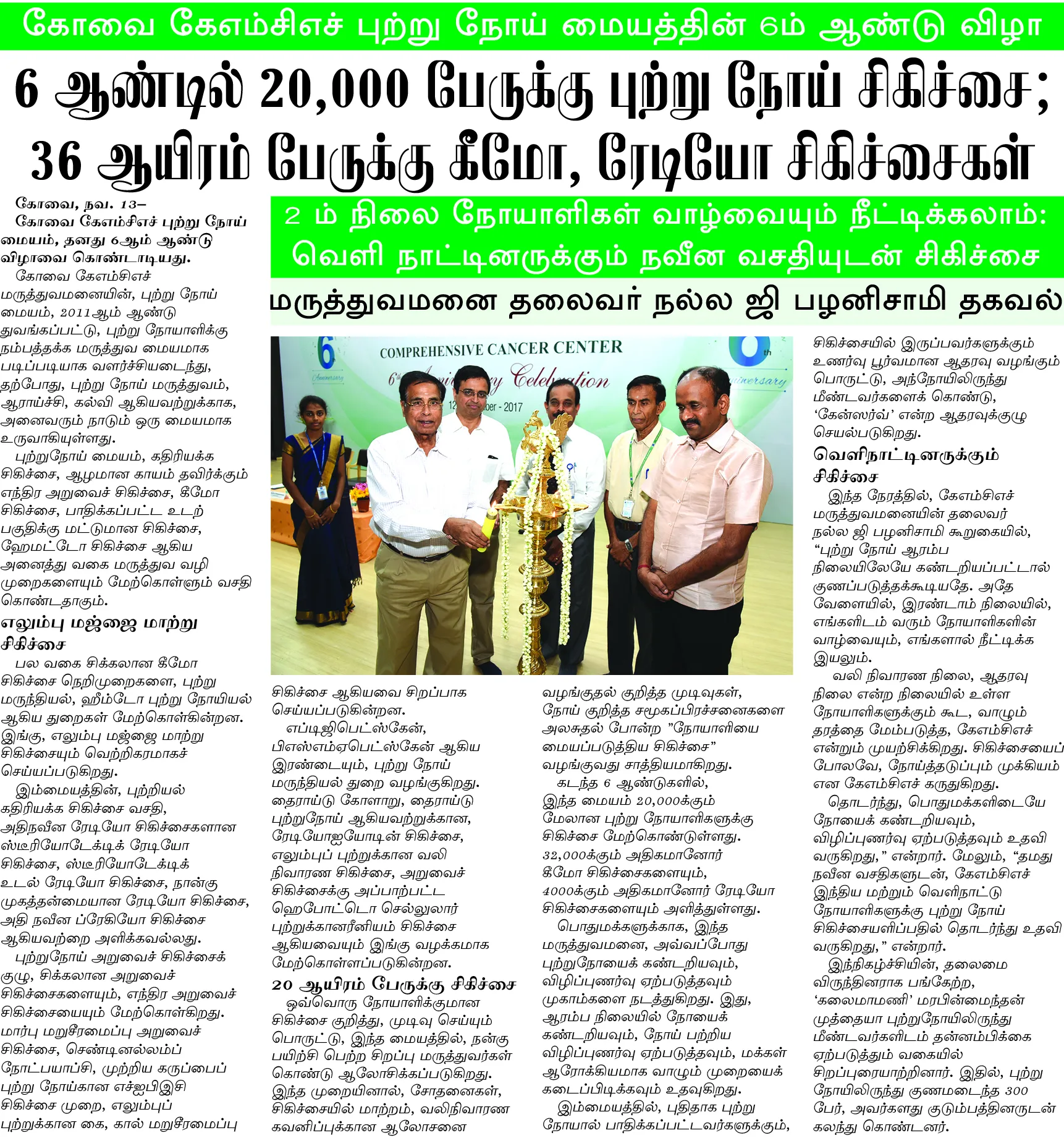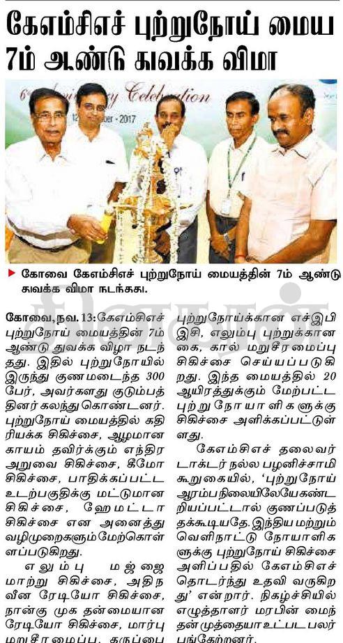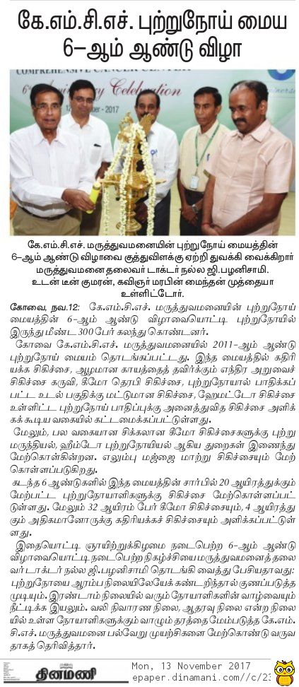 Press Clippings of “KMCH Celebrates Cancer Centre Anniversary” appeared in the following news journals.