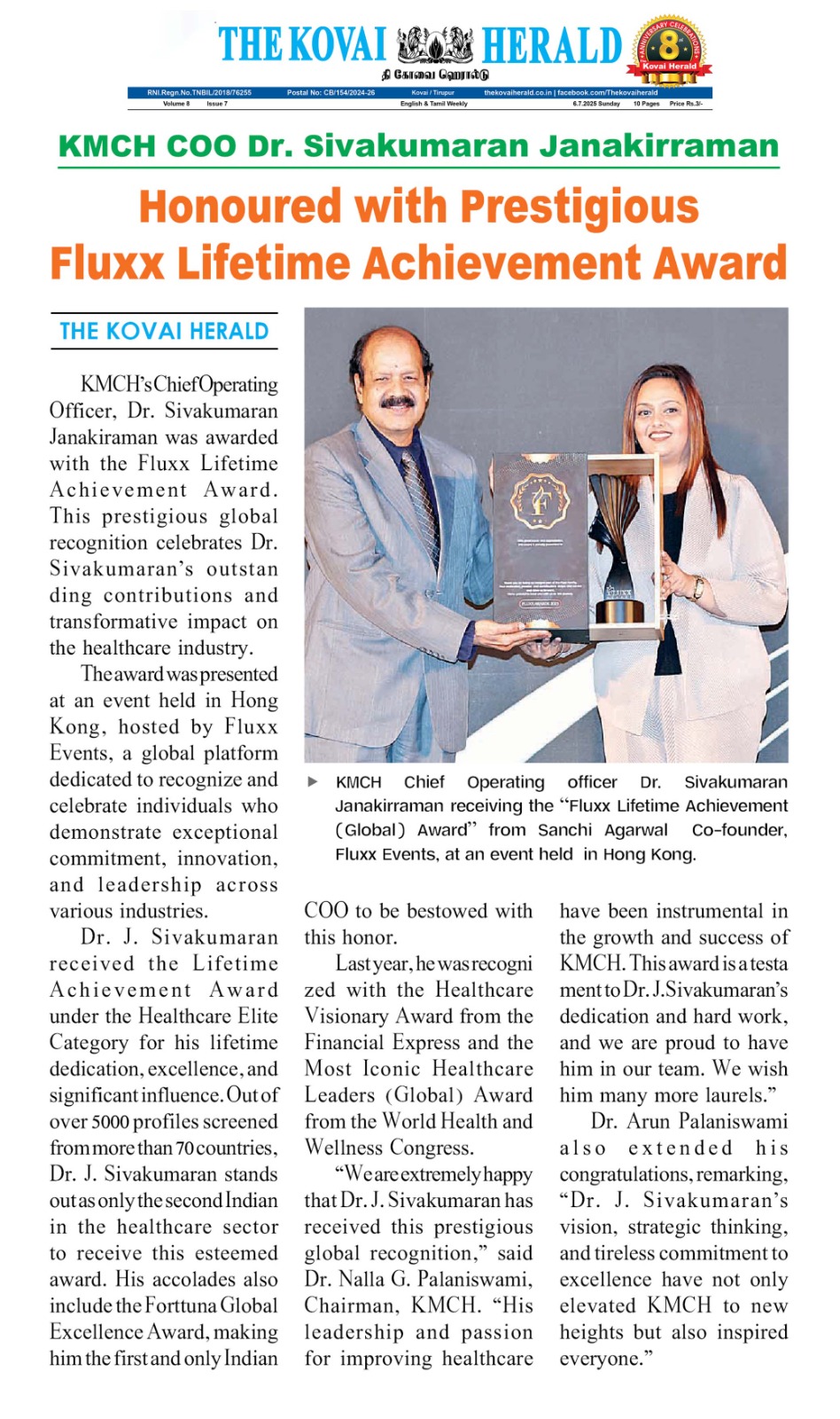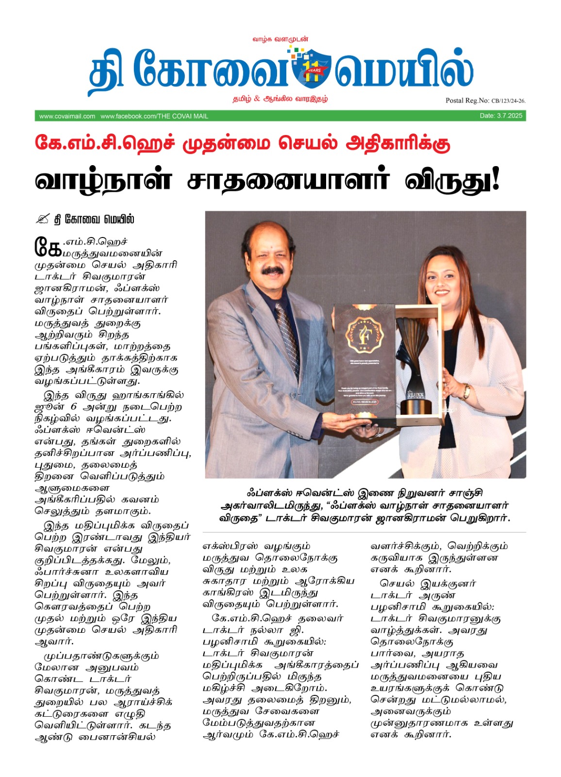 • KMCH COO Honoured with Fluxx life time Achievement Award