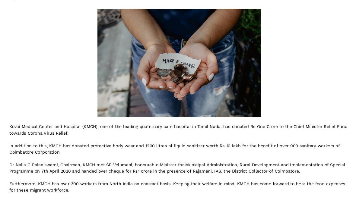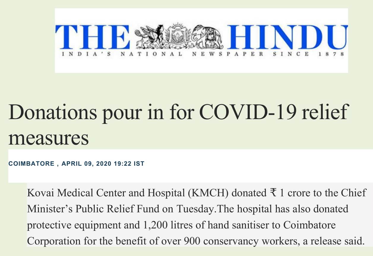 • KMCH donates Rs. One Crore Ten lakh for Corona Virus Relief