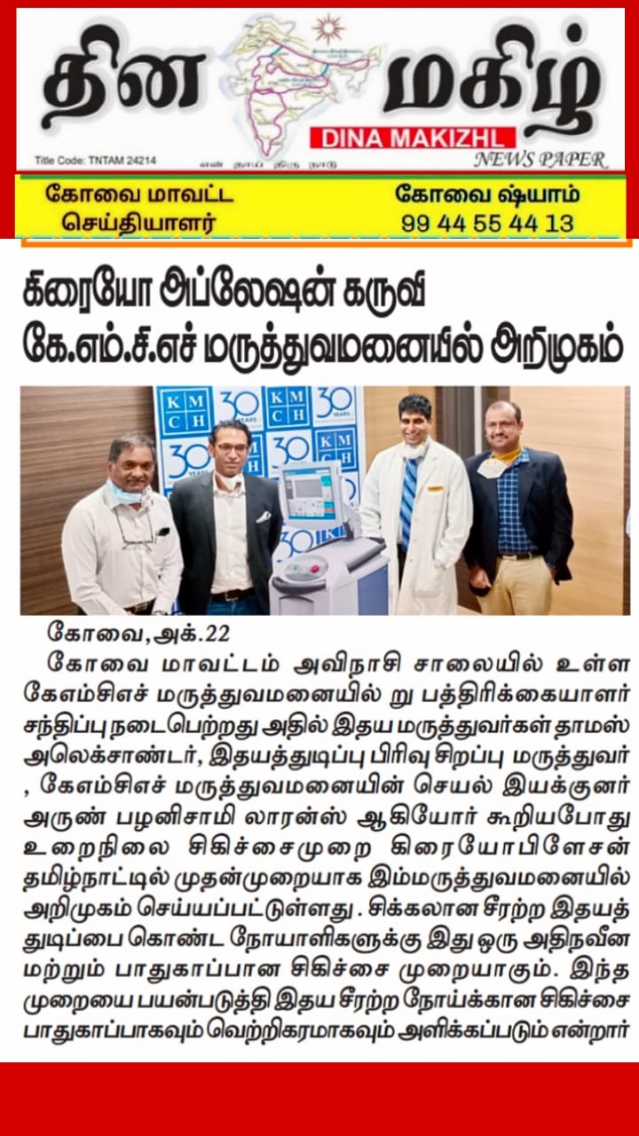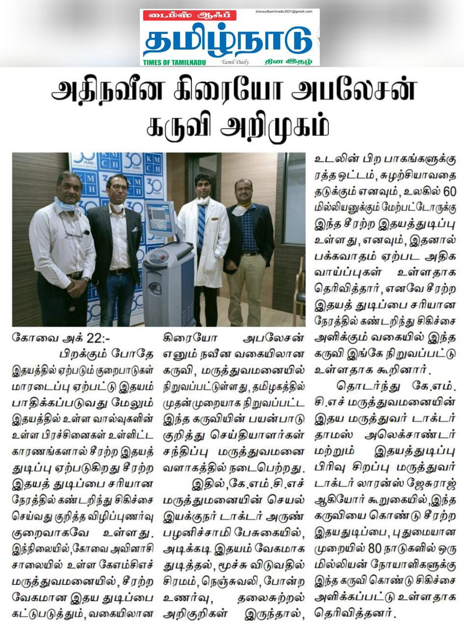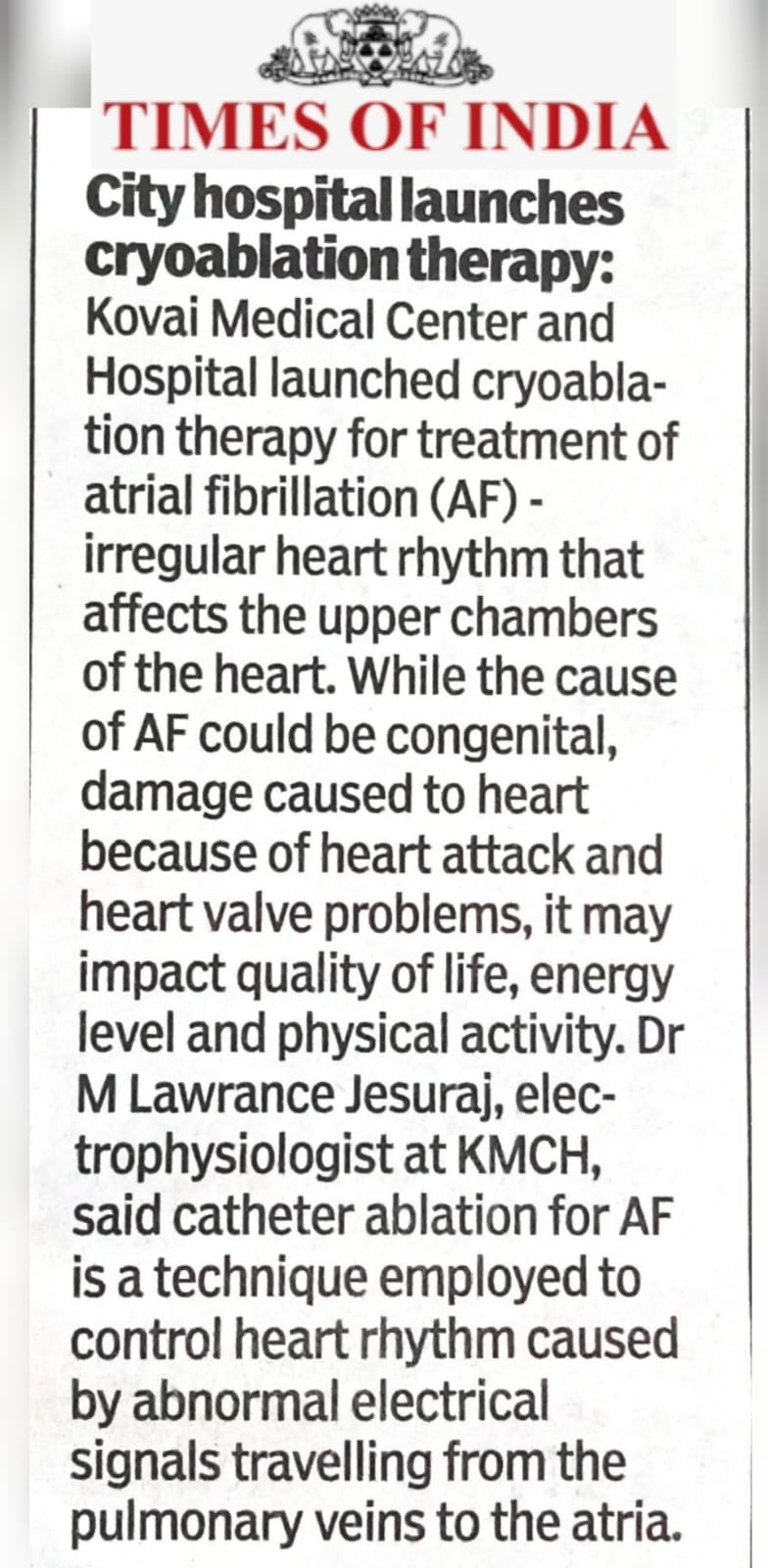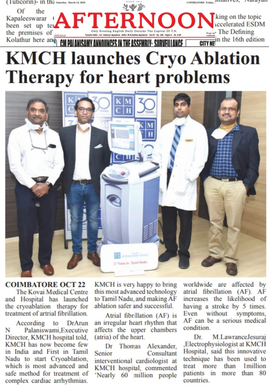 • KMCH launches Cryo Ablation Therapy for heart problems