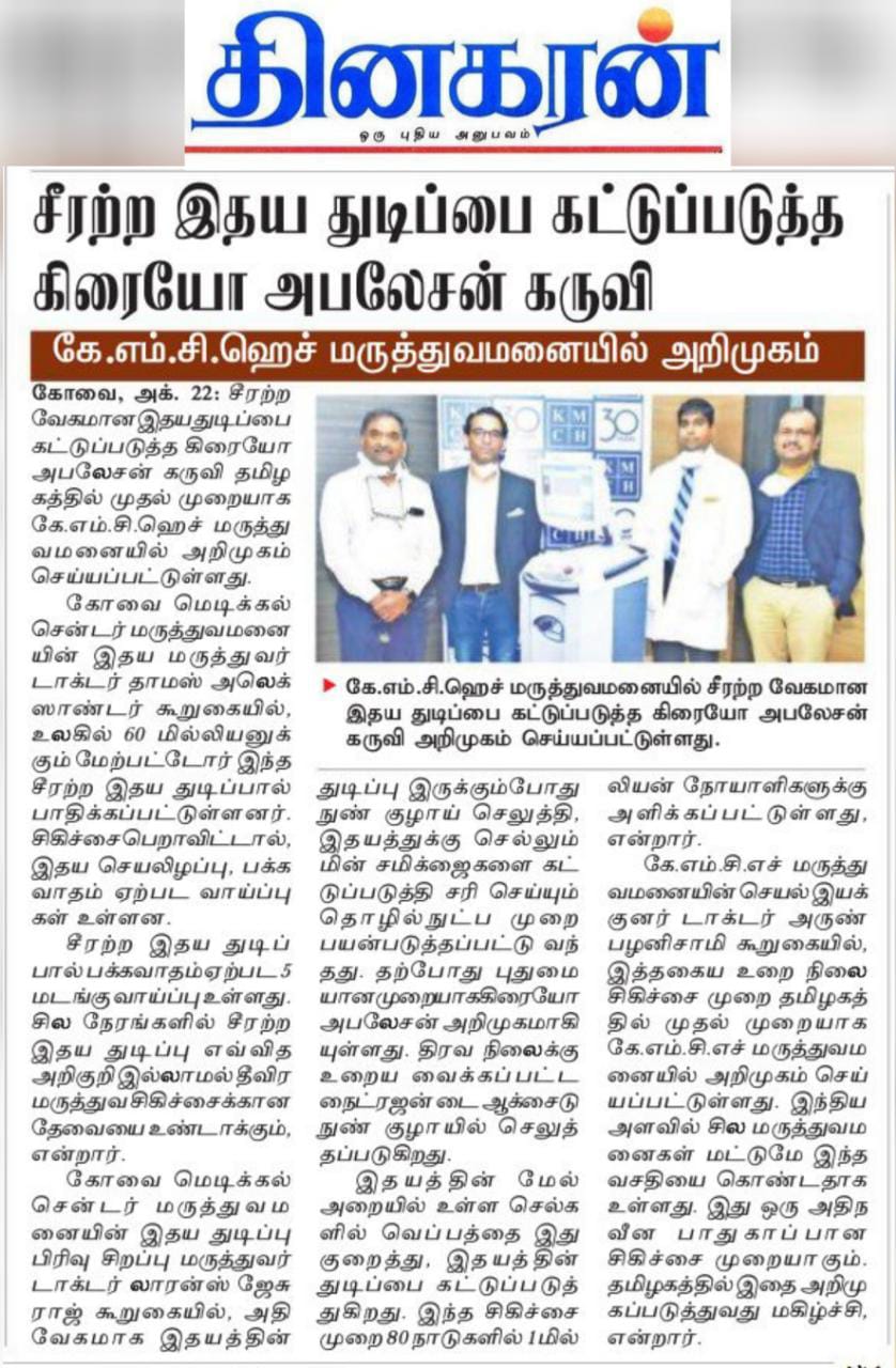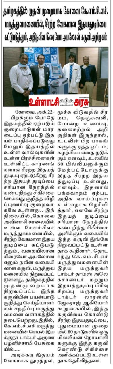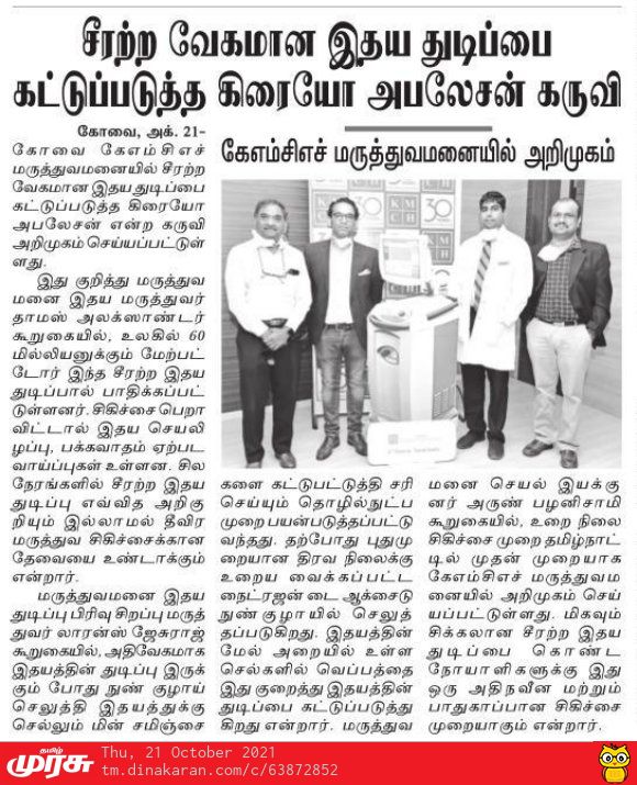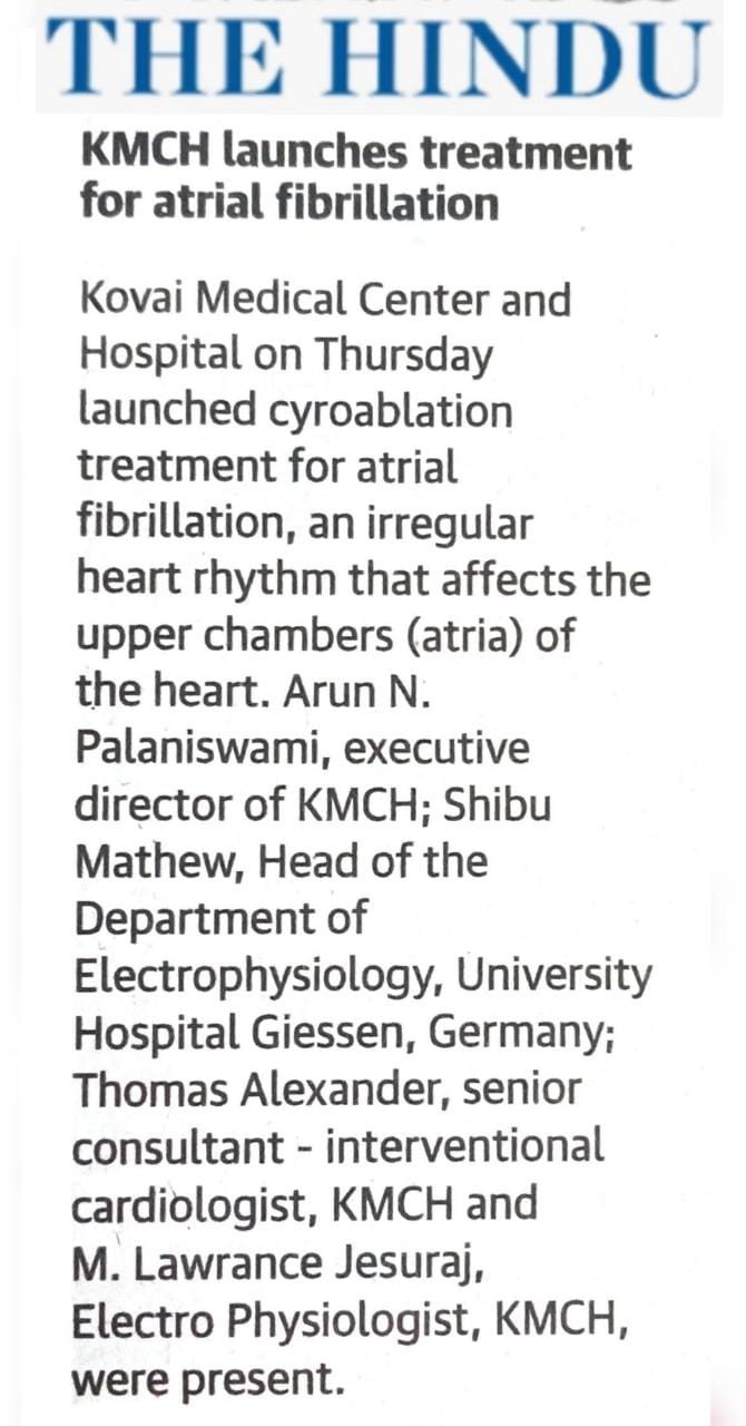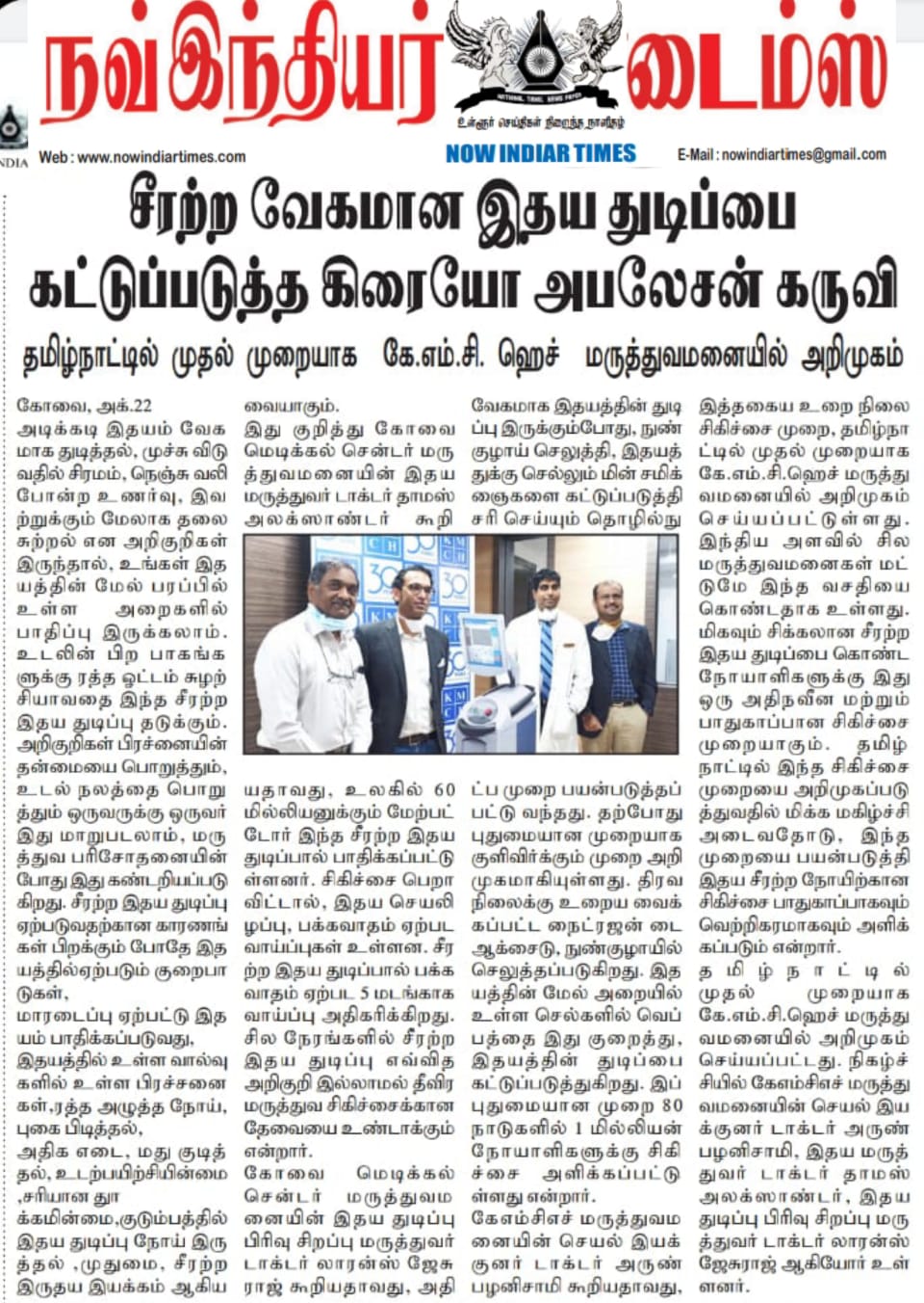 • KMCH launches Cryo Ablation Therapy for heart problems