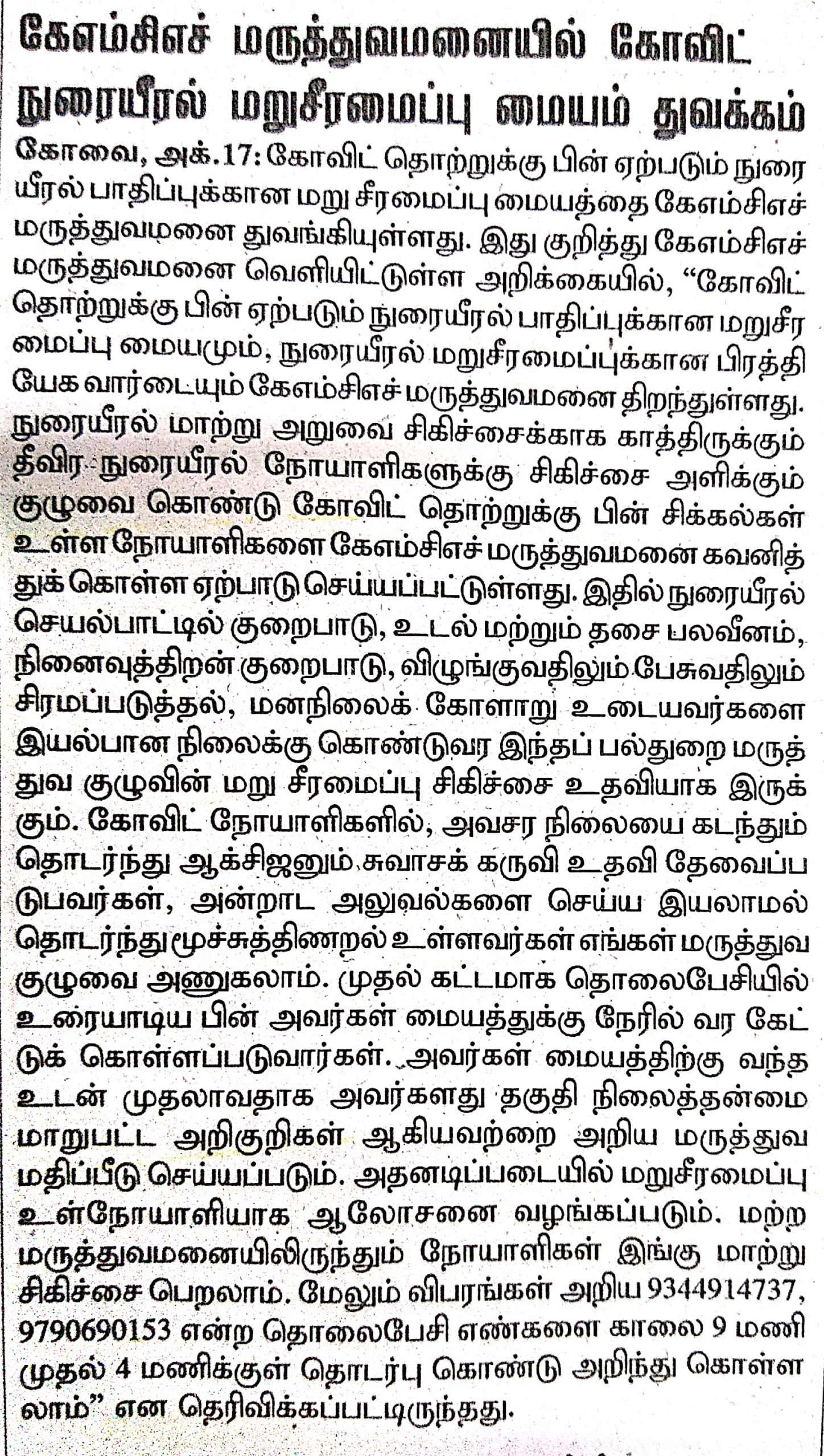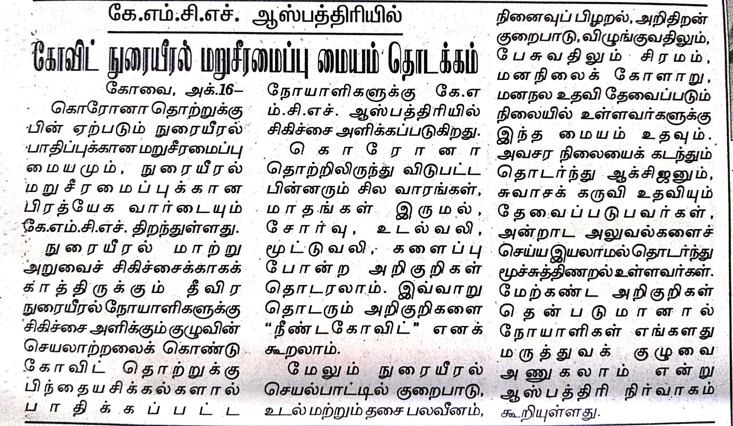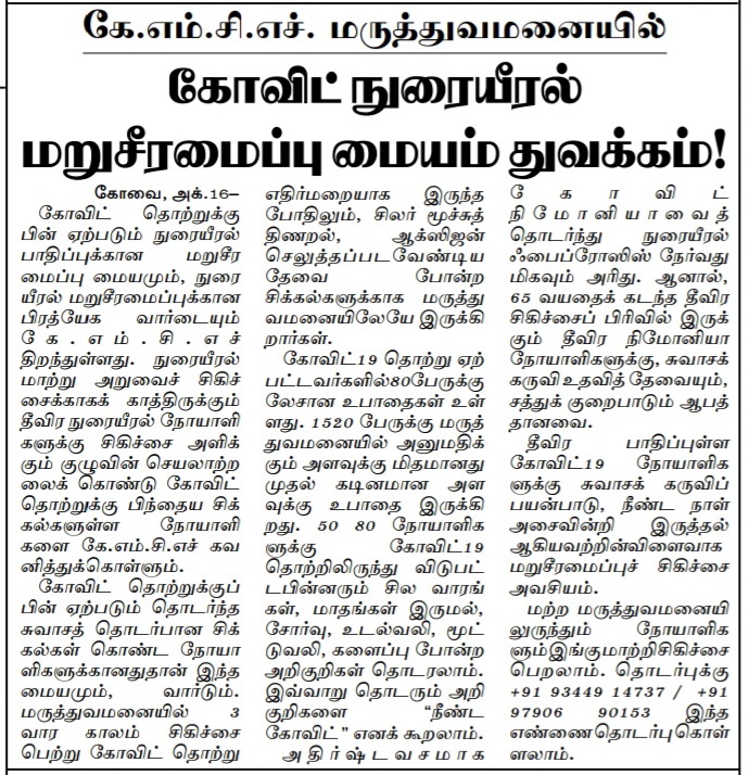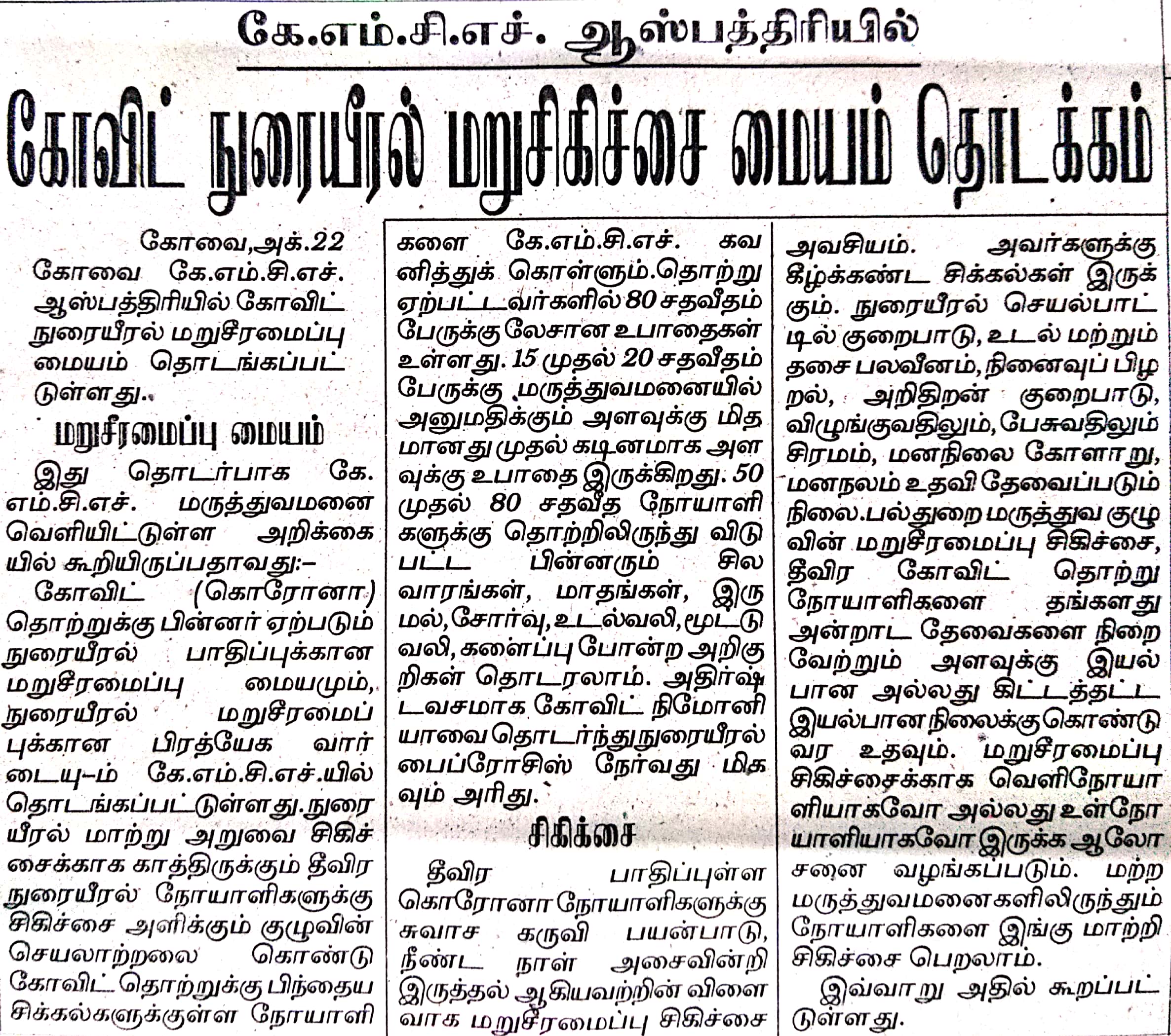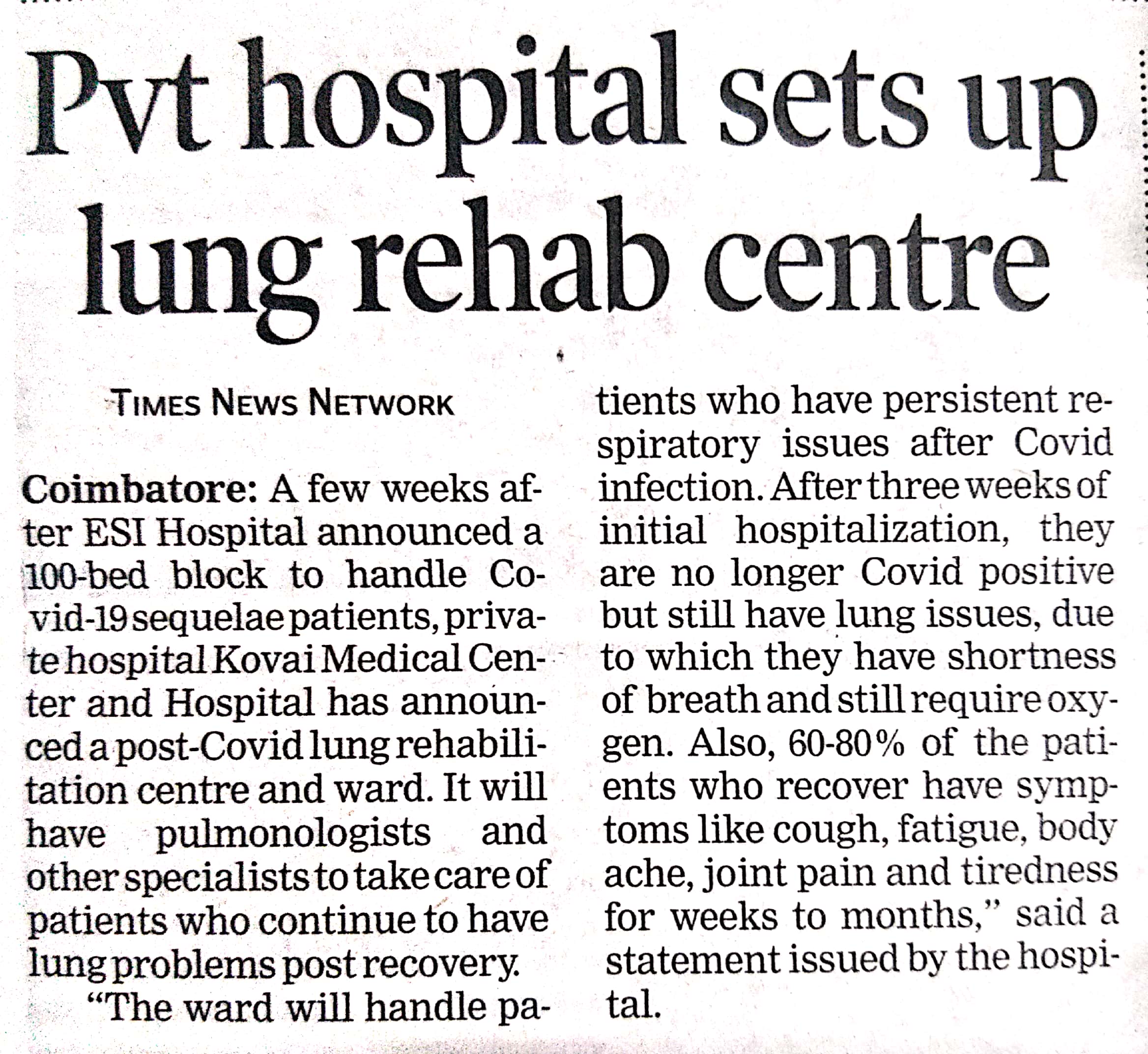 • KMCH launches Post-Covid Lung Rehabilitation Center