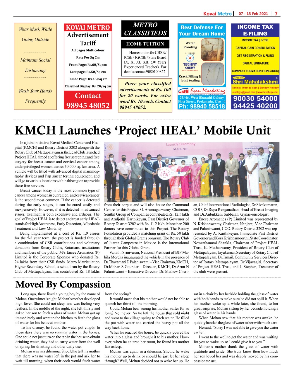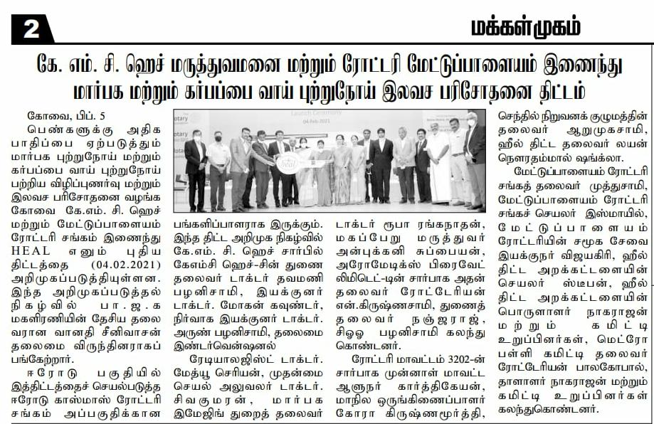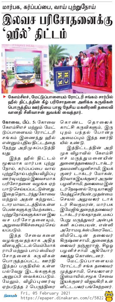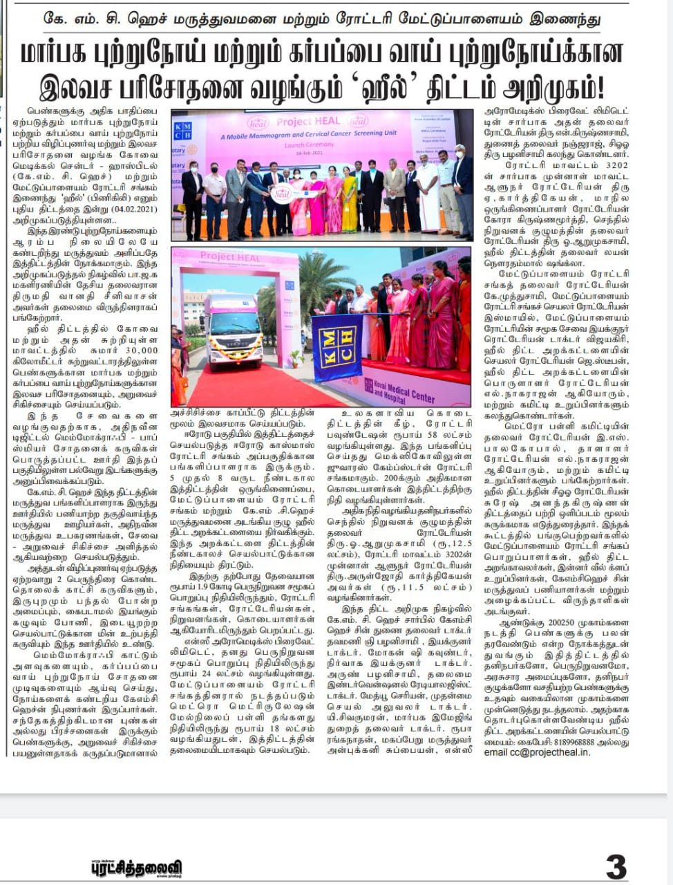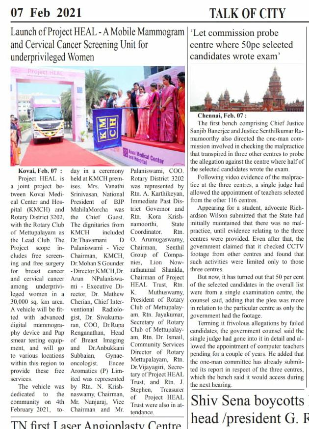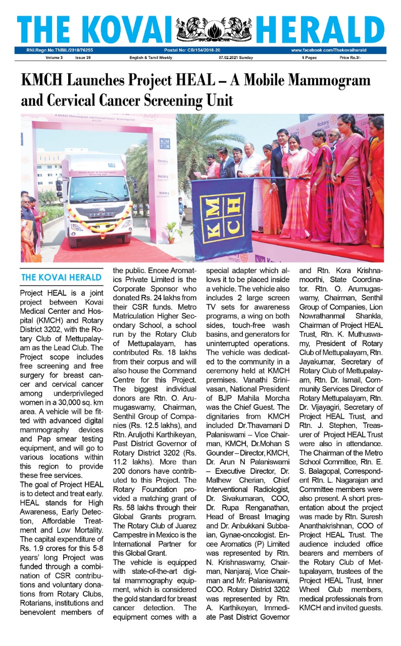 Press Clippings of “KMCH Launches "Project Heal" Mobile Unit for Women” appeared in the following news journals.