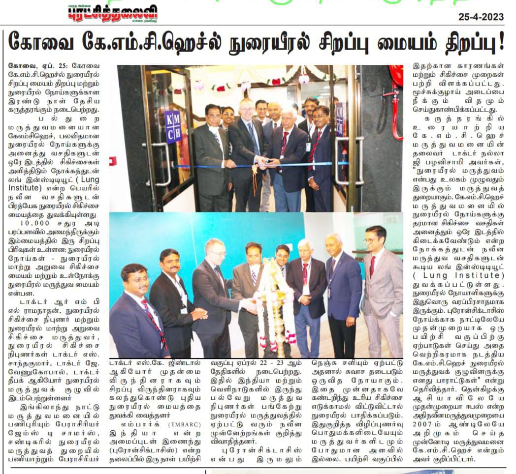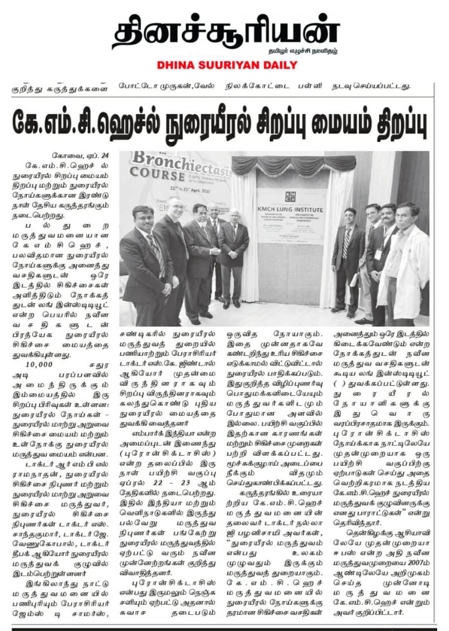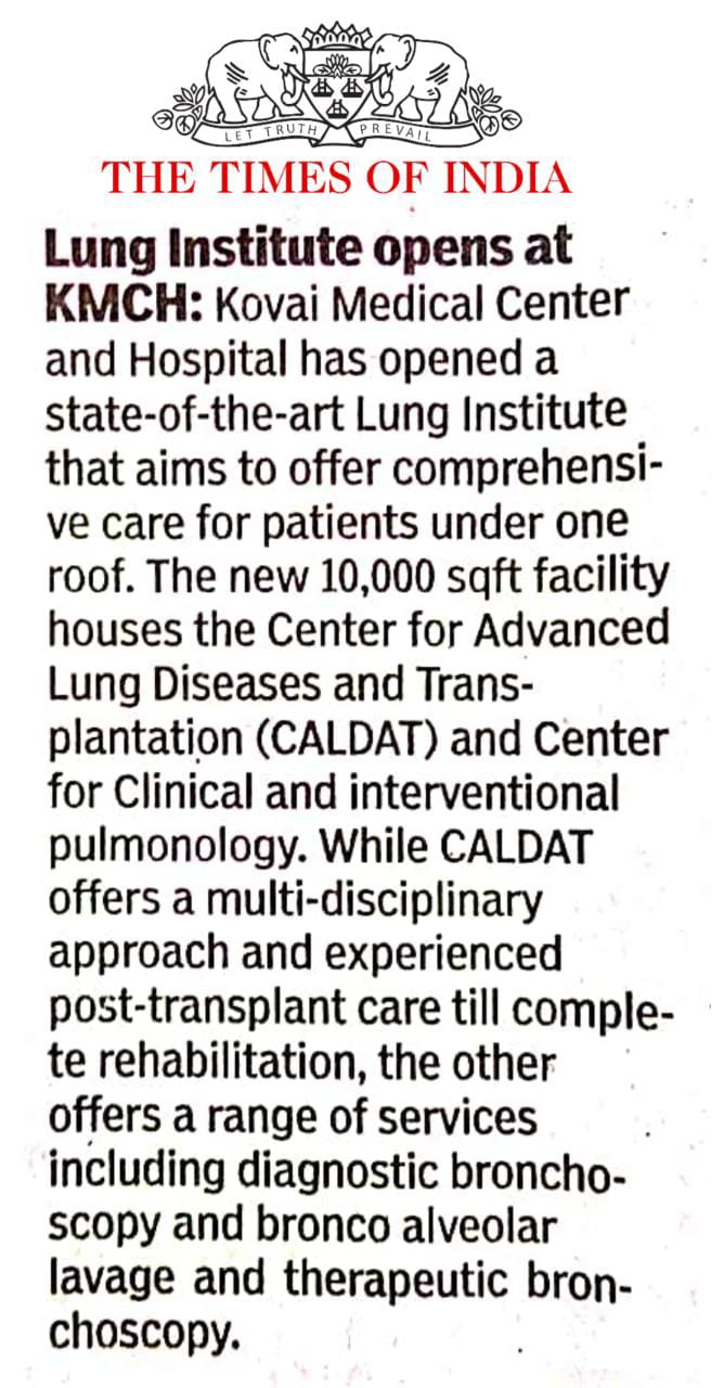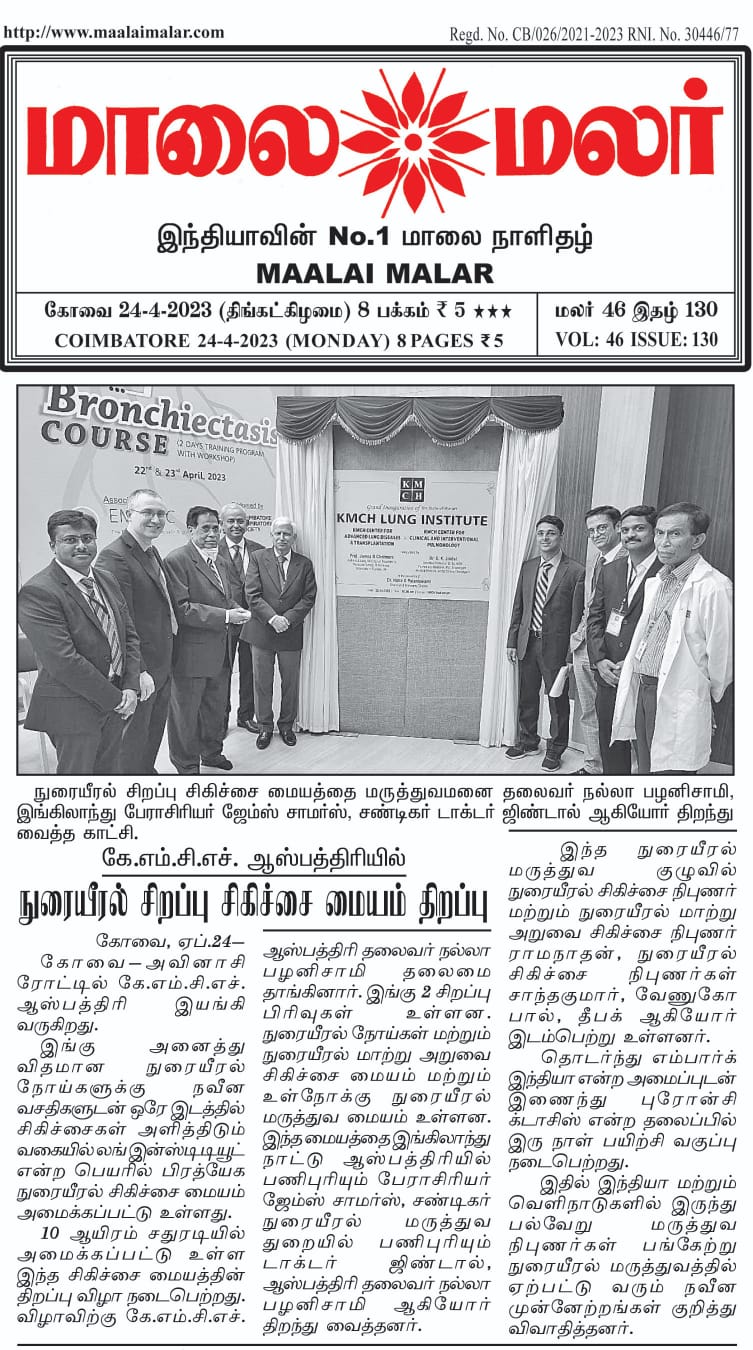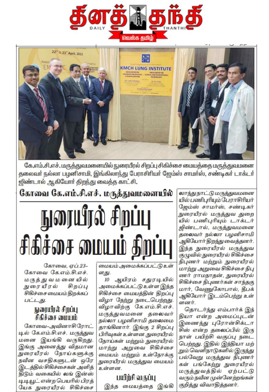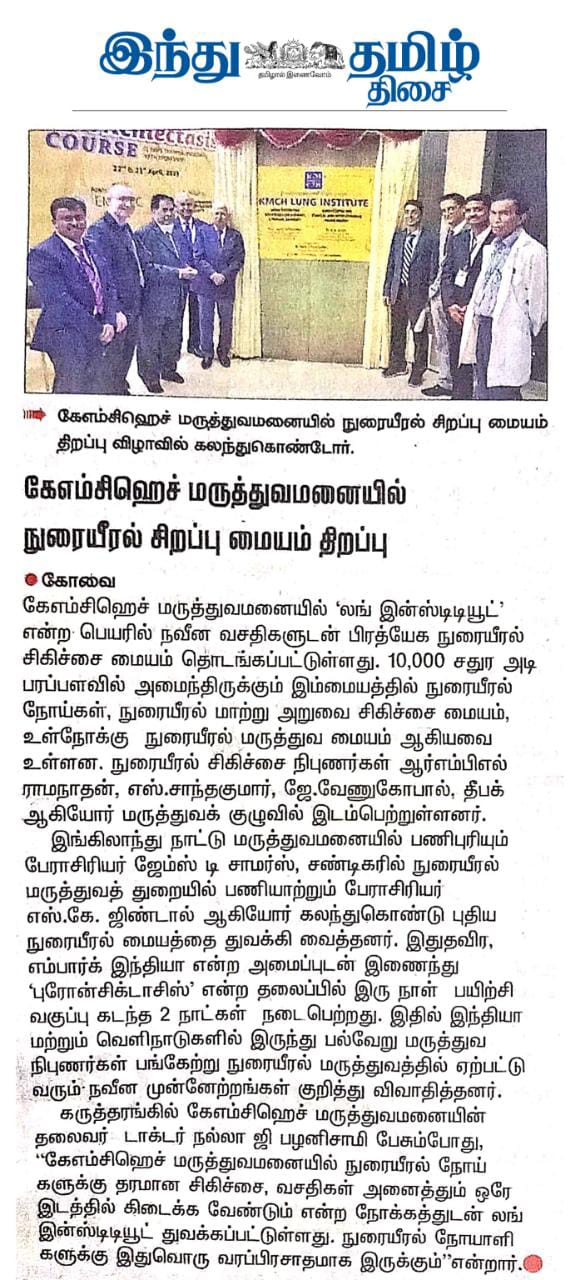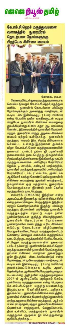 Please find enclosed the Press Clippings of “KMCH Lung Institute” appeared in the following news journals.