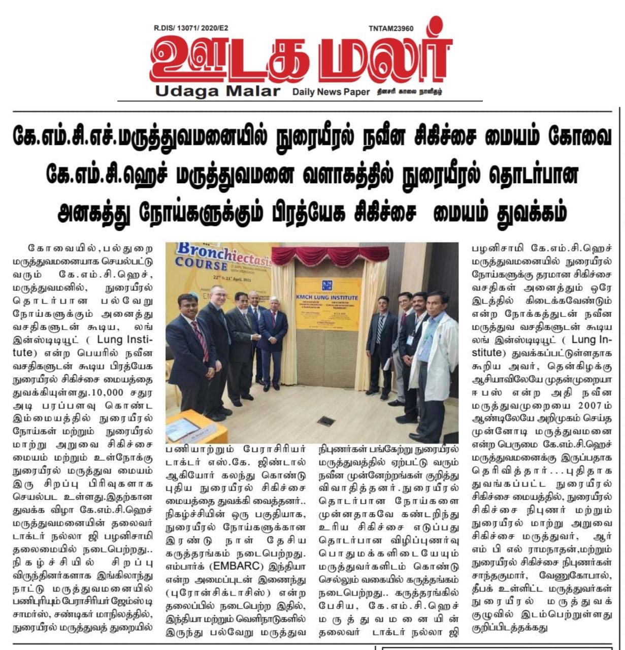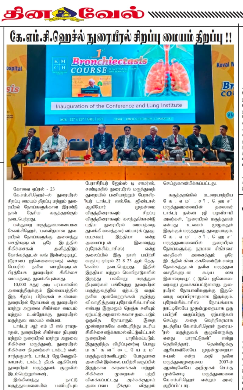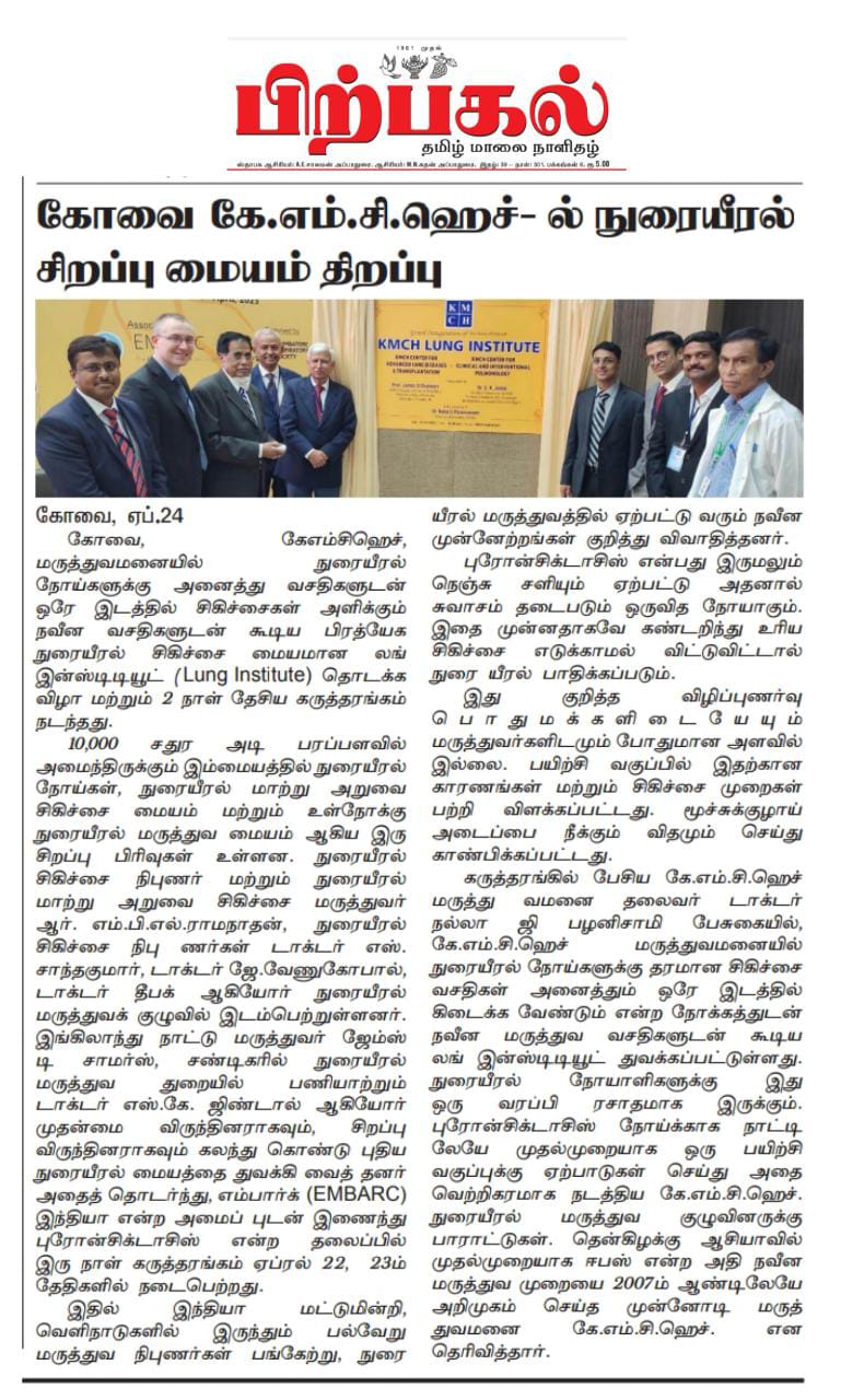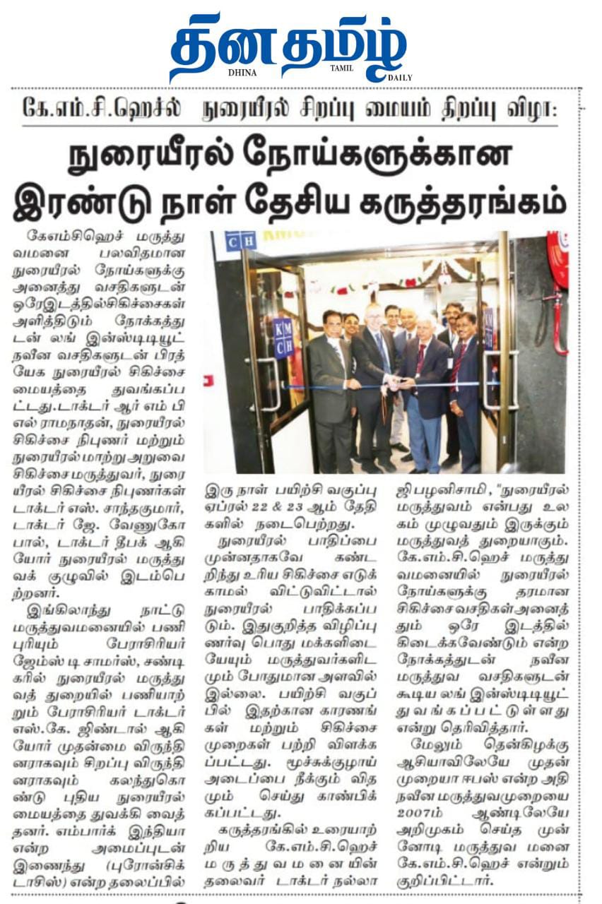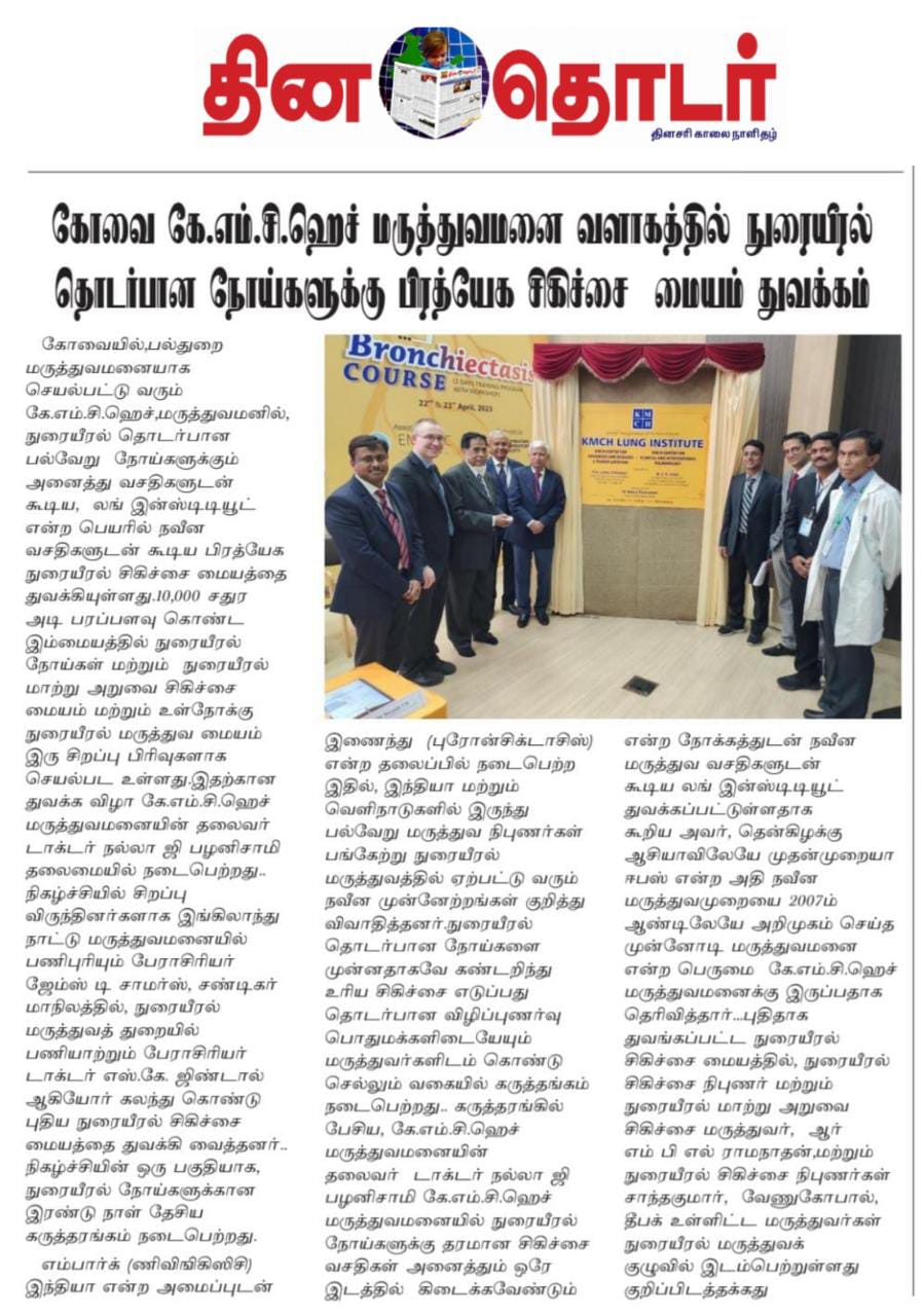 Please find enclosed the Press Clippings of “KMCH Lung Institute” appeared in the following news journals.