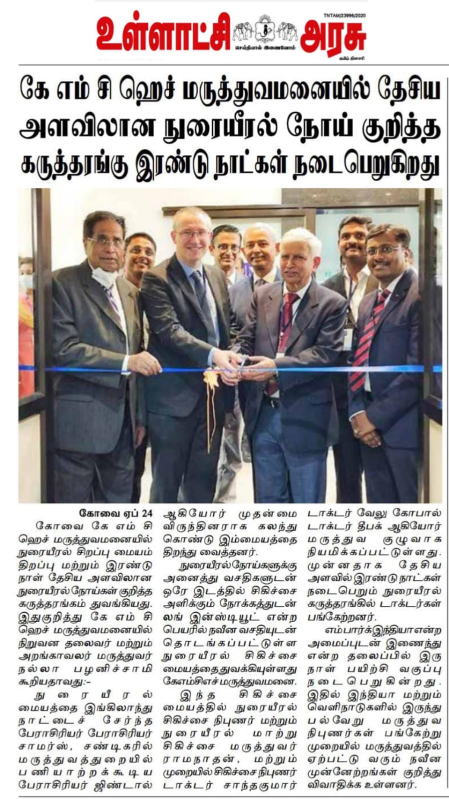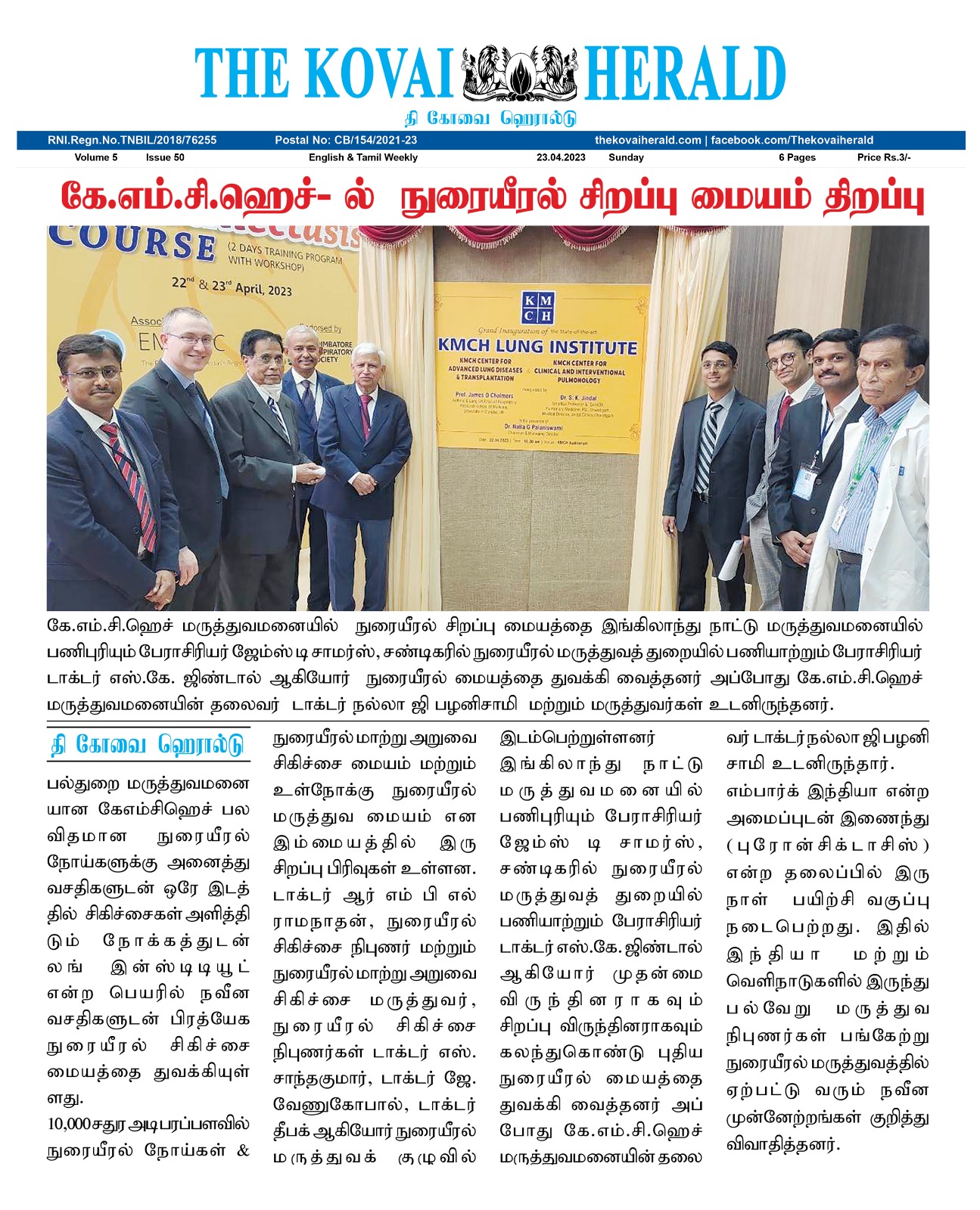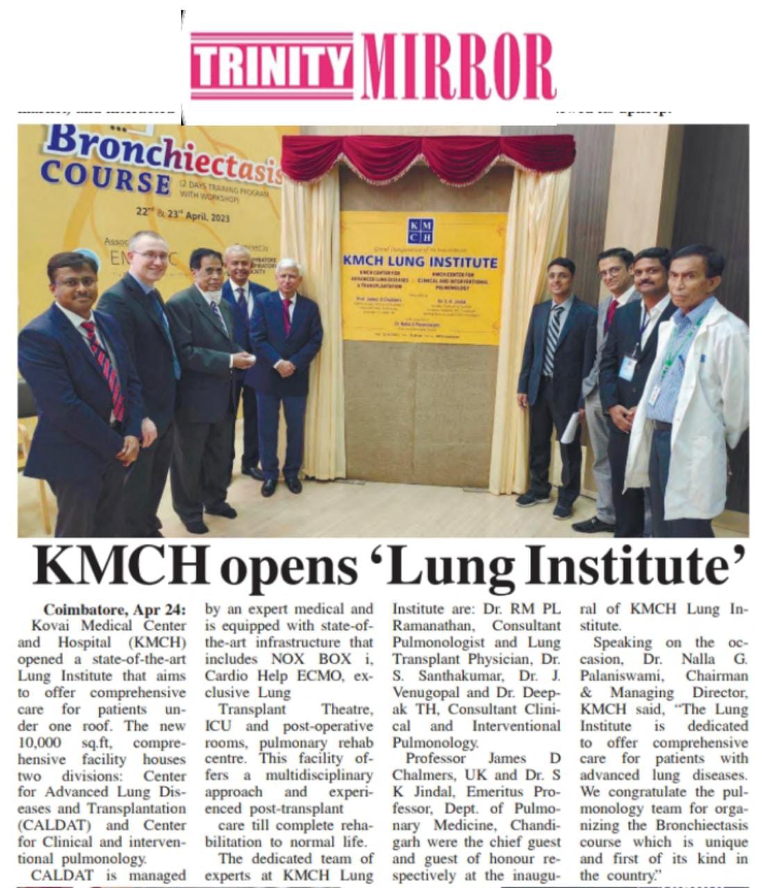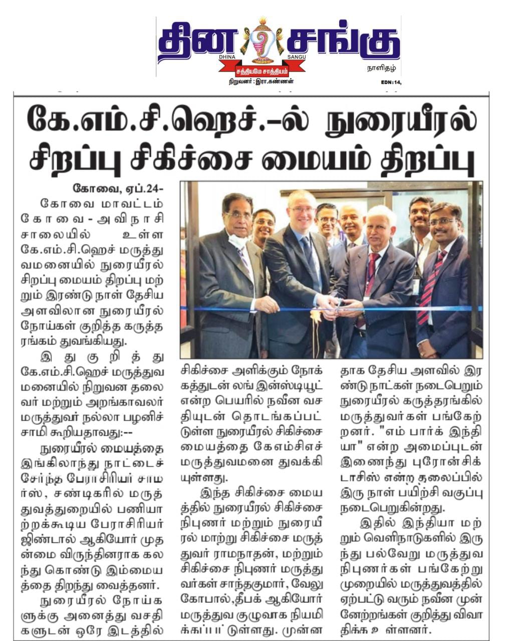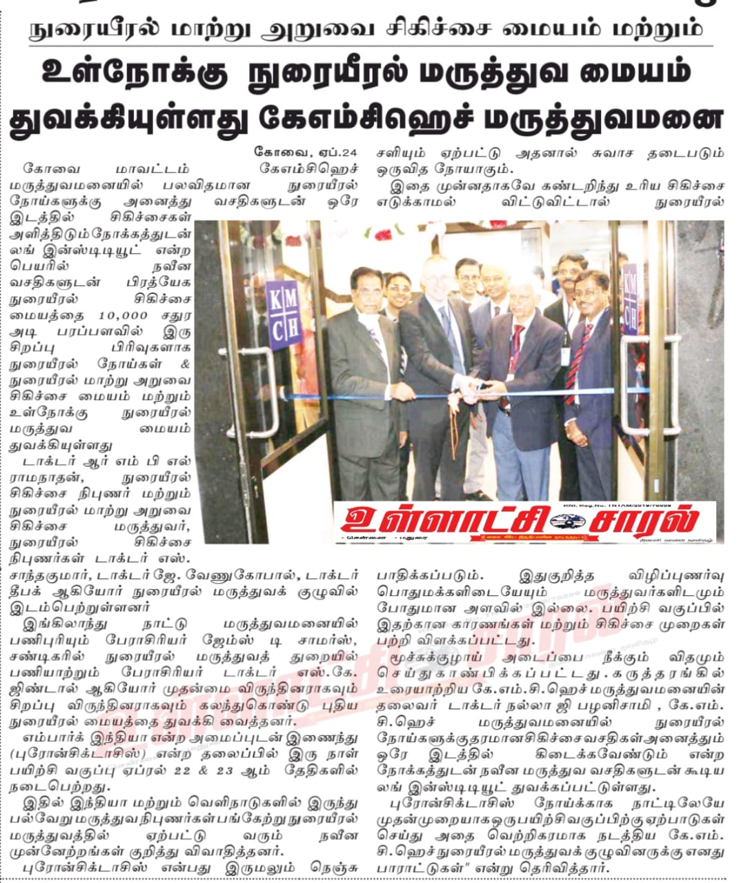 Please find enclosed the Press Clippings of “KMCH Lung Institute” appeared in the following news journals.