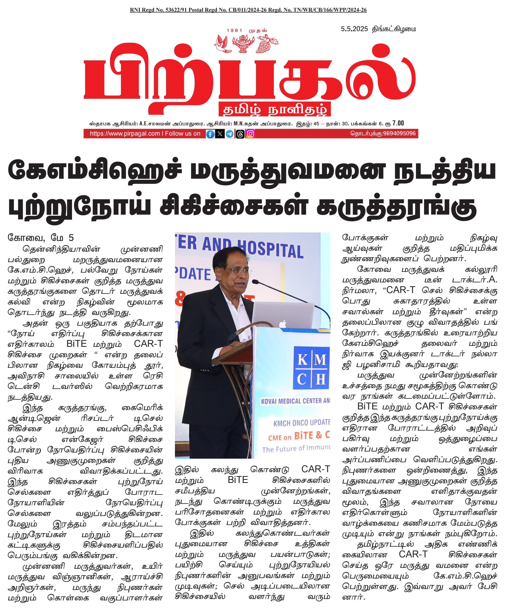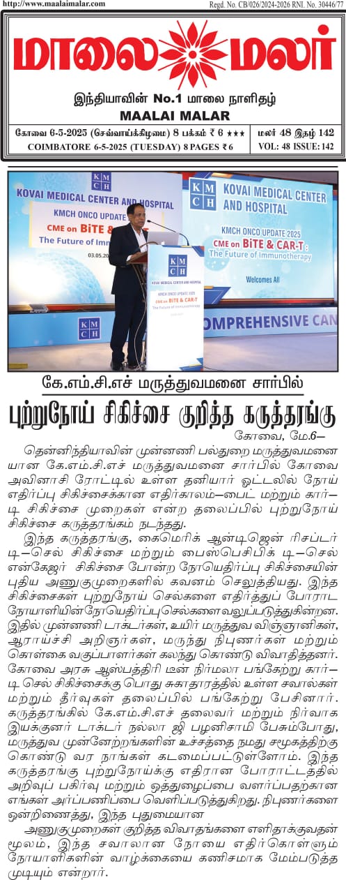• KMCH Onco Update 2025, CME on BiTE & CAR-T: The Future of Immunotherapy