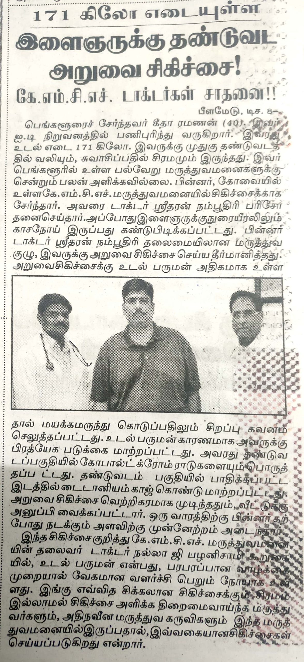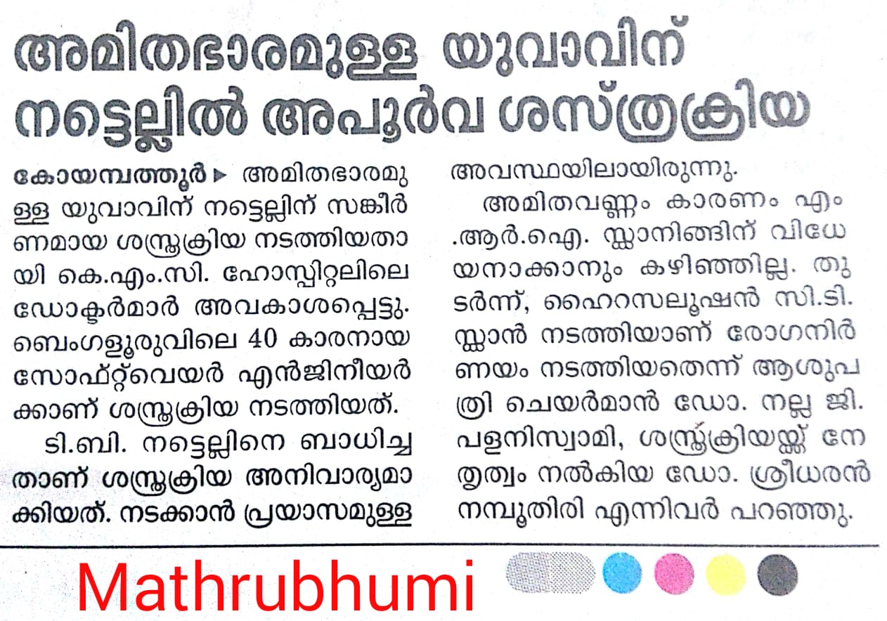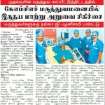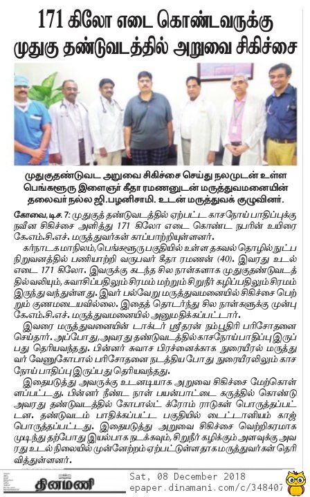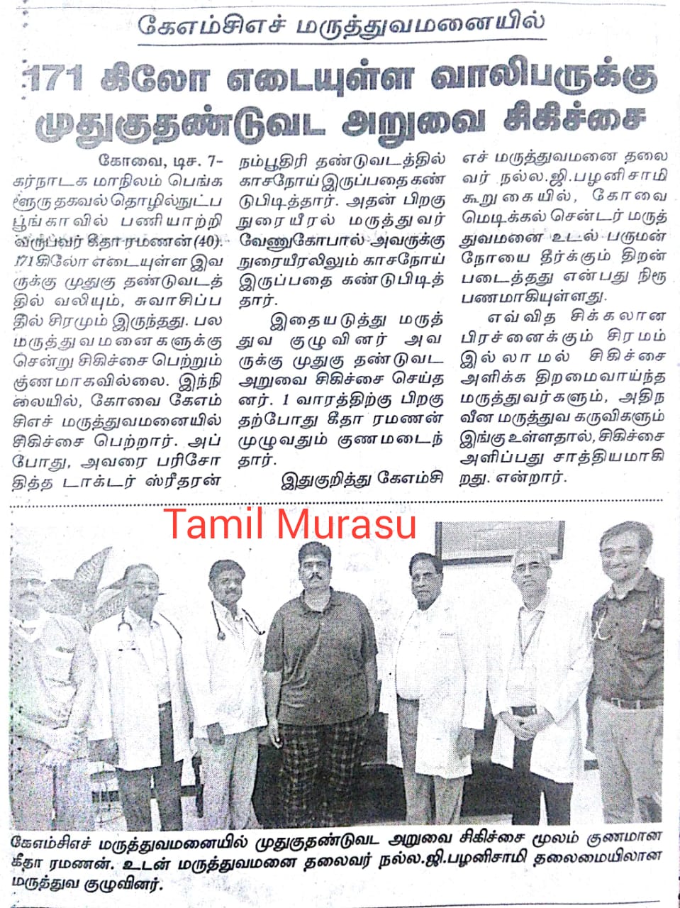 Press Clippings of “KMCH Performs Complex Spine Surgery, Successfully saves life of a young techie” appeared in the following news journals.