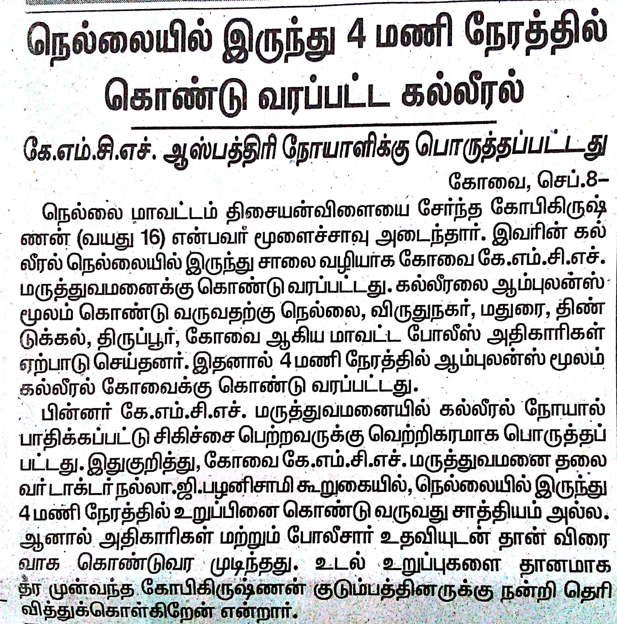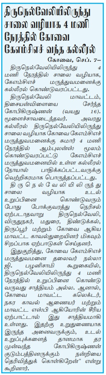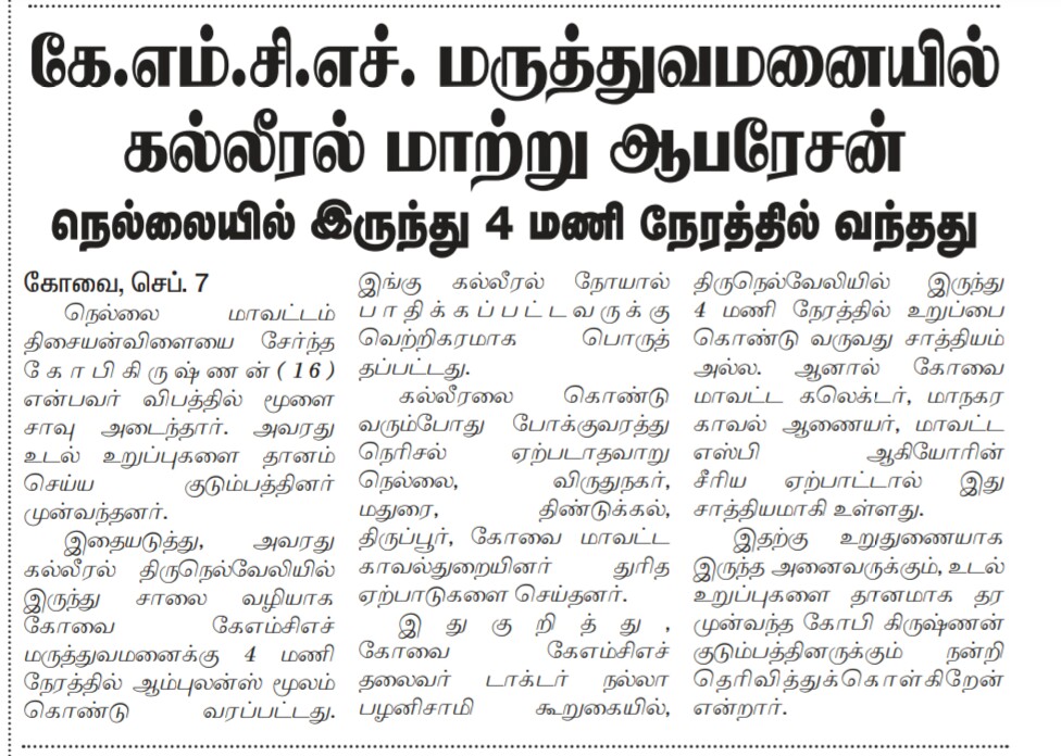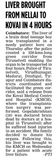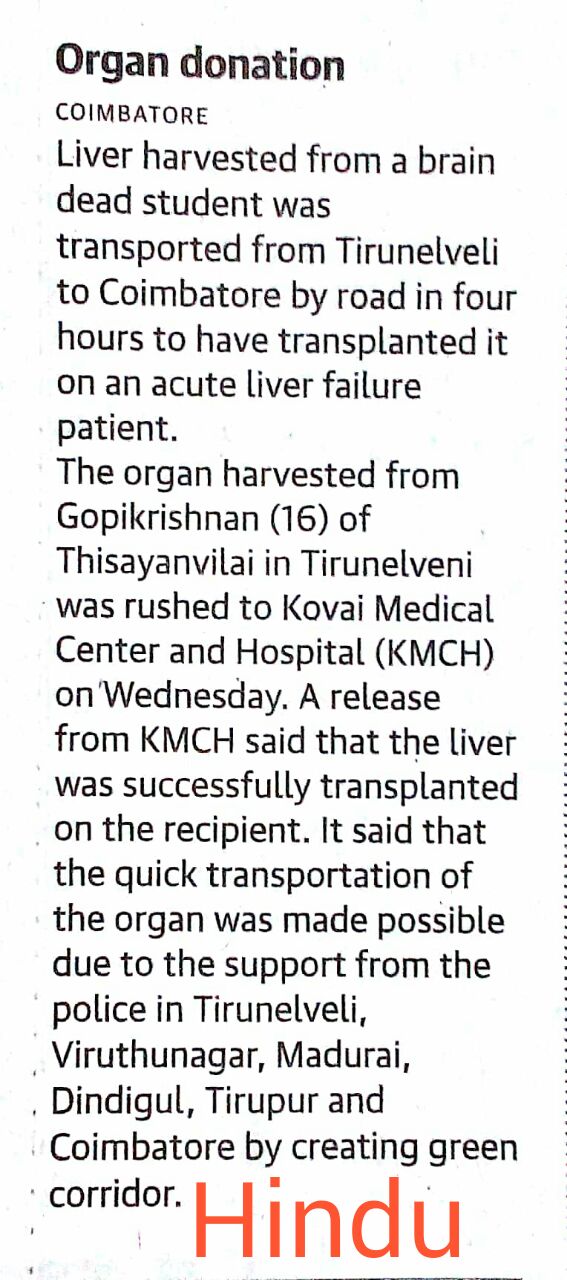 • Liver Transported From Tirunelveli to KMCH Hospital in 4 Hours.