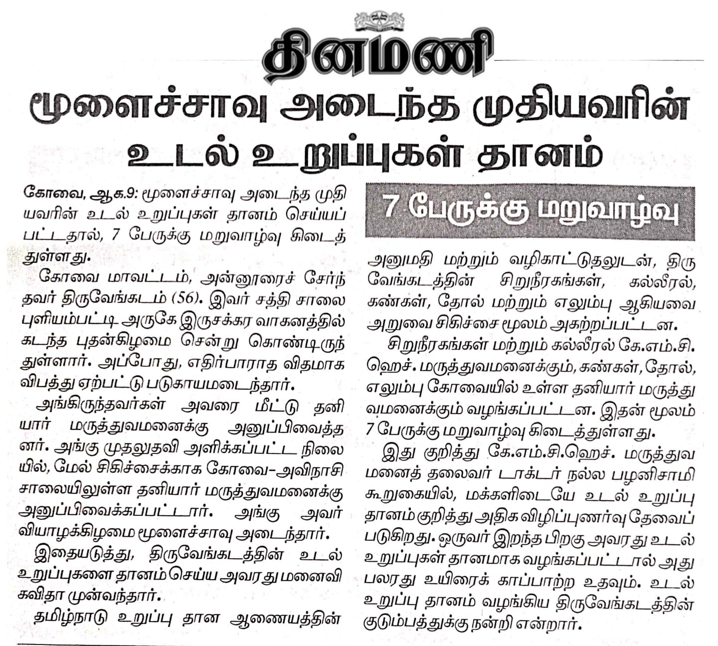 Press Clippings of "Organ Donation" appeared in the following news journals.