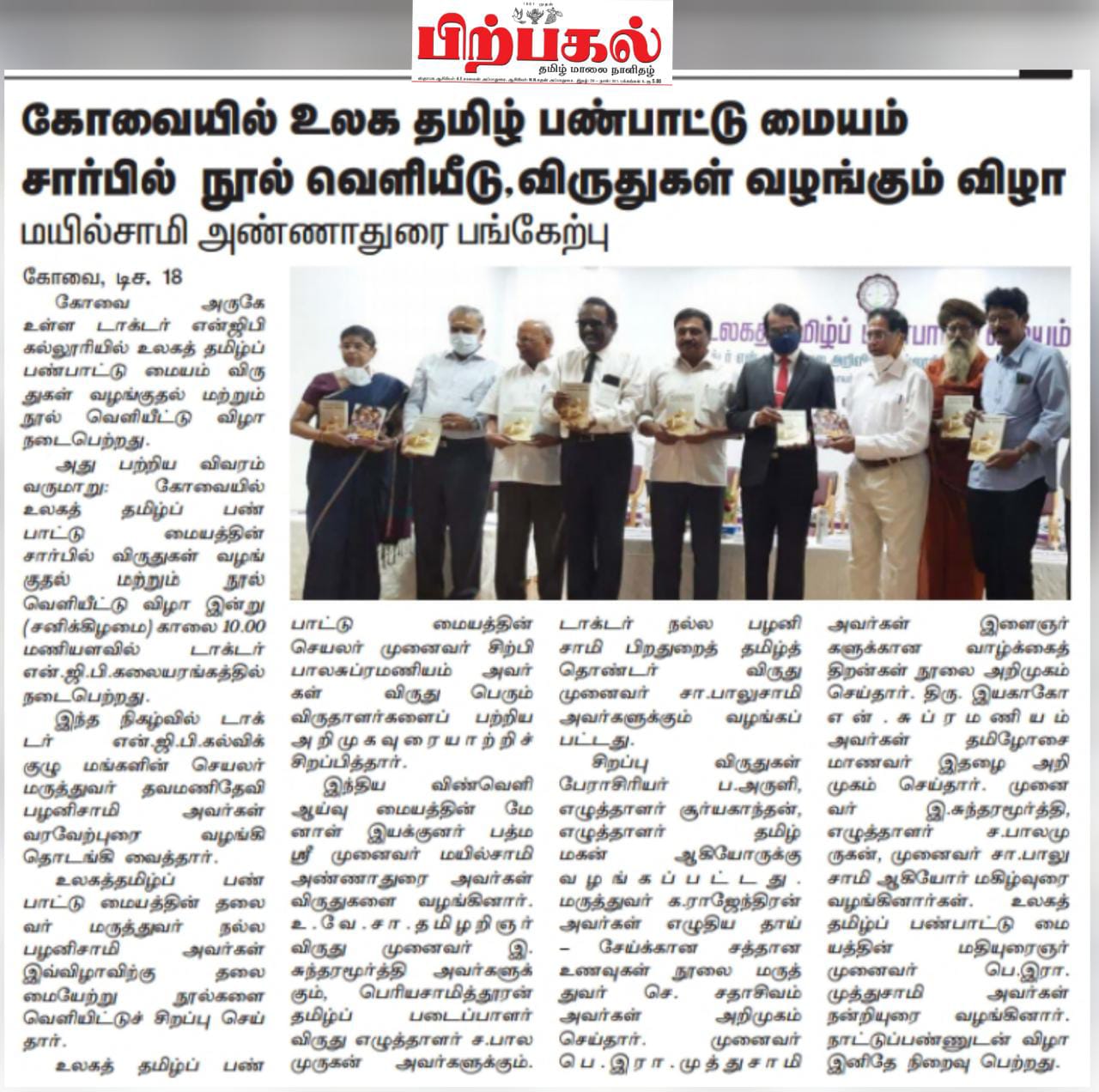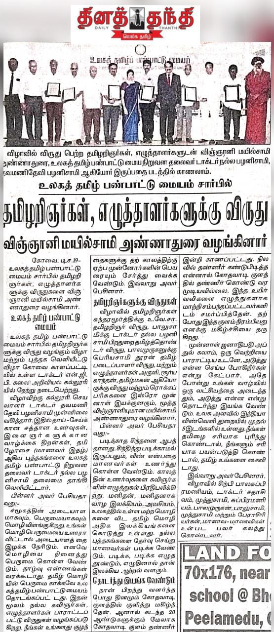 Press Clippings of “Tamil Panpattu Maiyam holds annual book launch event” appeared in the following news journals.